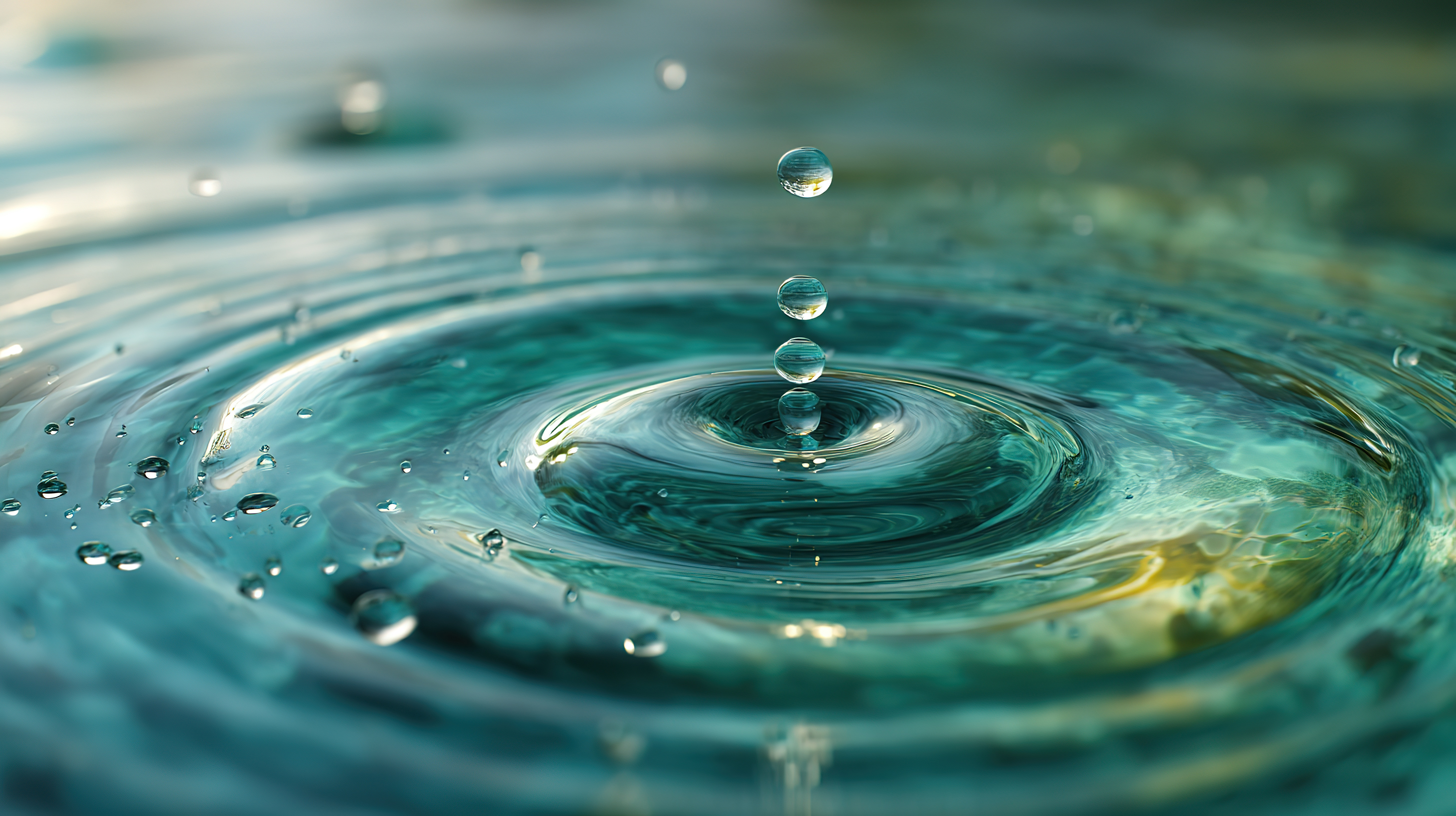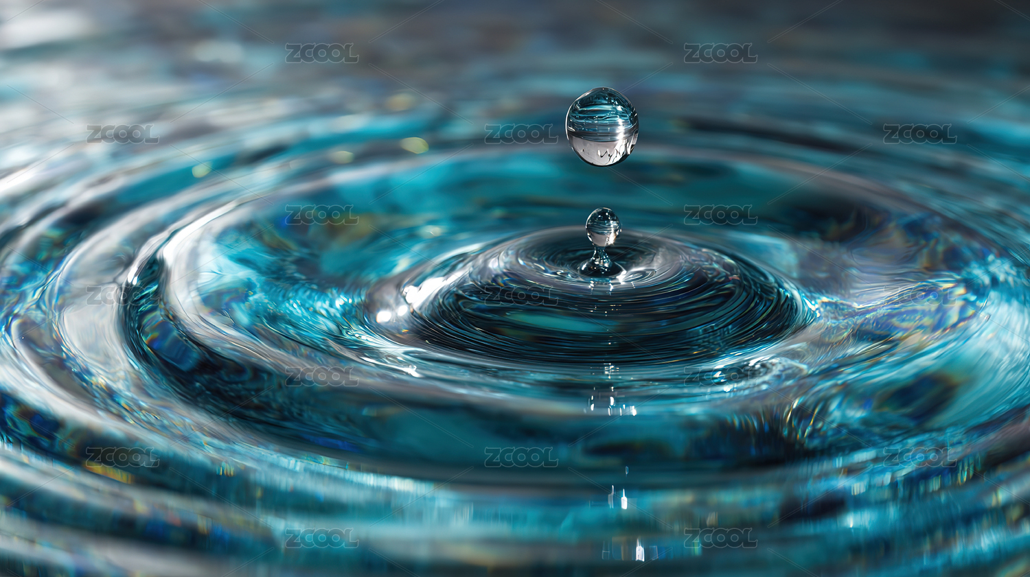 水滴入水激起涟漪场景 波光粼粼视觉效果