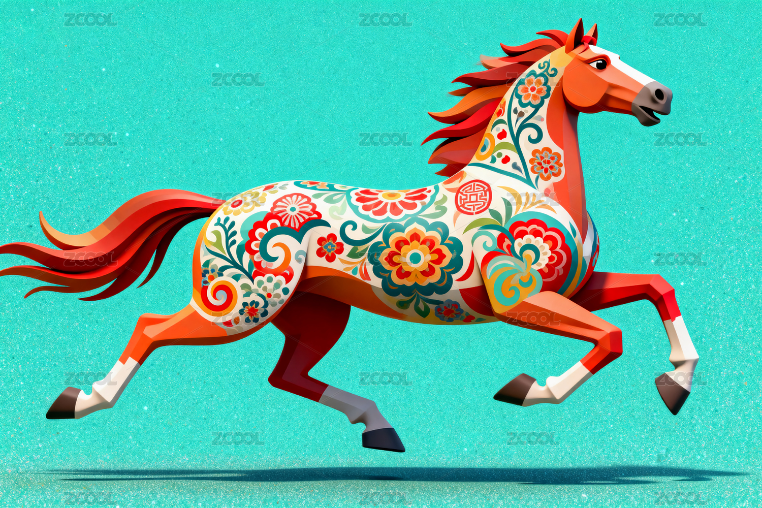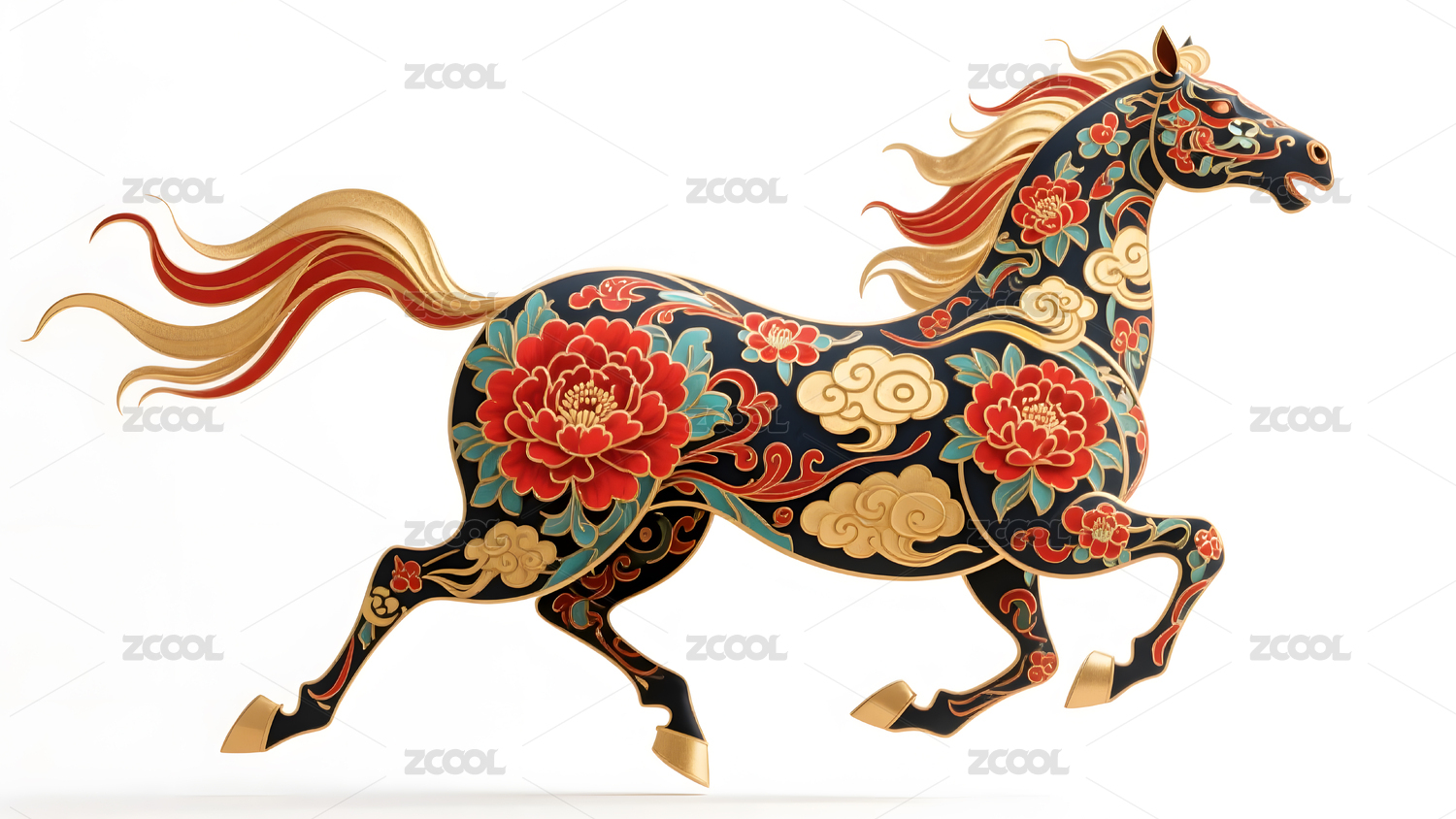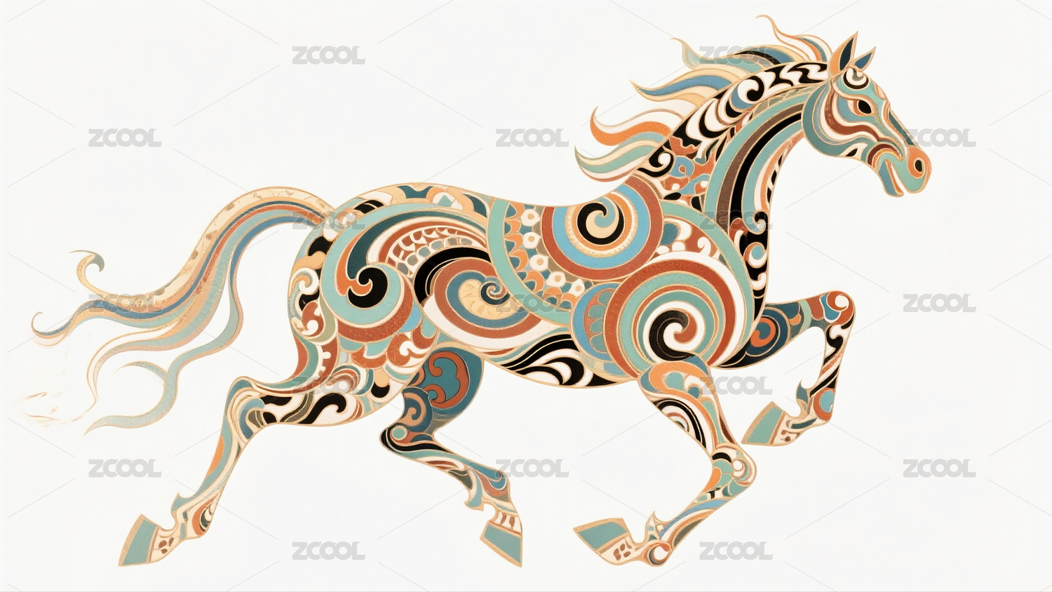 创意,马,传统,骏马,古典,插画,艺术,数字,马年,动物