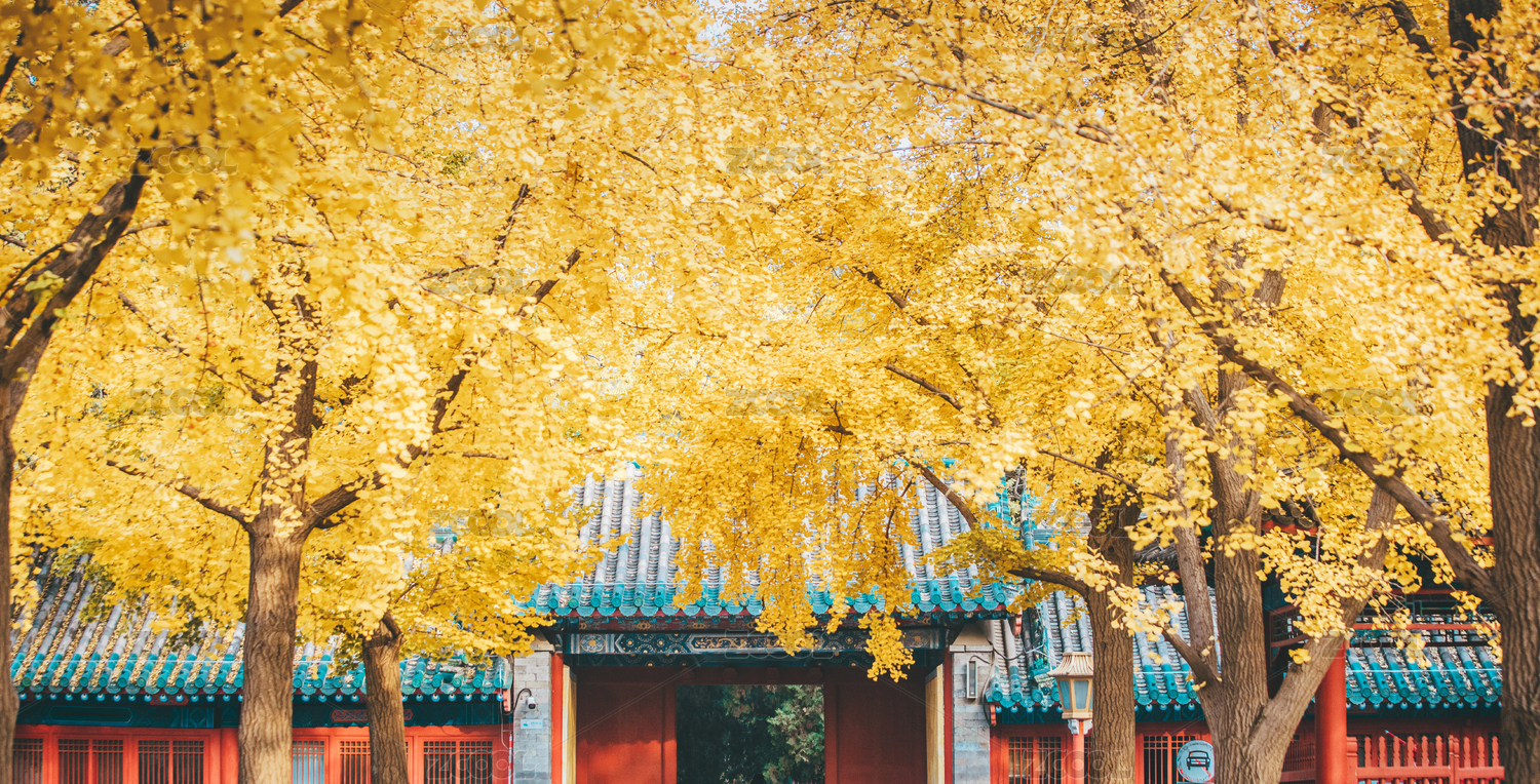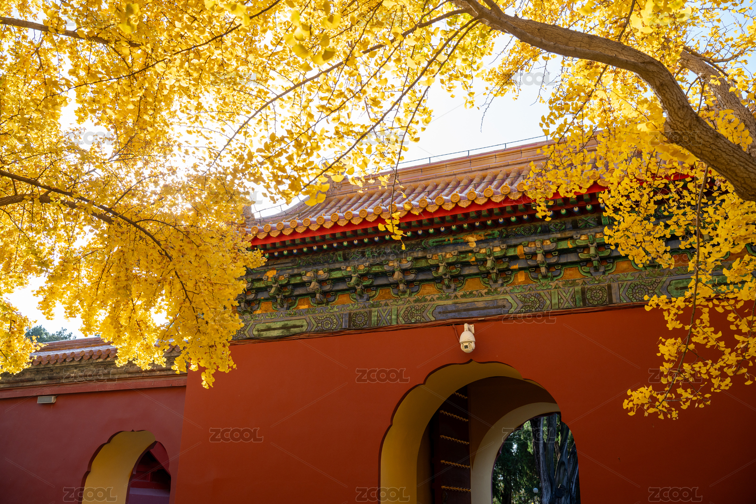 秋天,银杏,黄叶,中式,亭廊,古建筑,红柱,屋檐,景致,园林