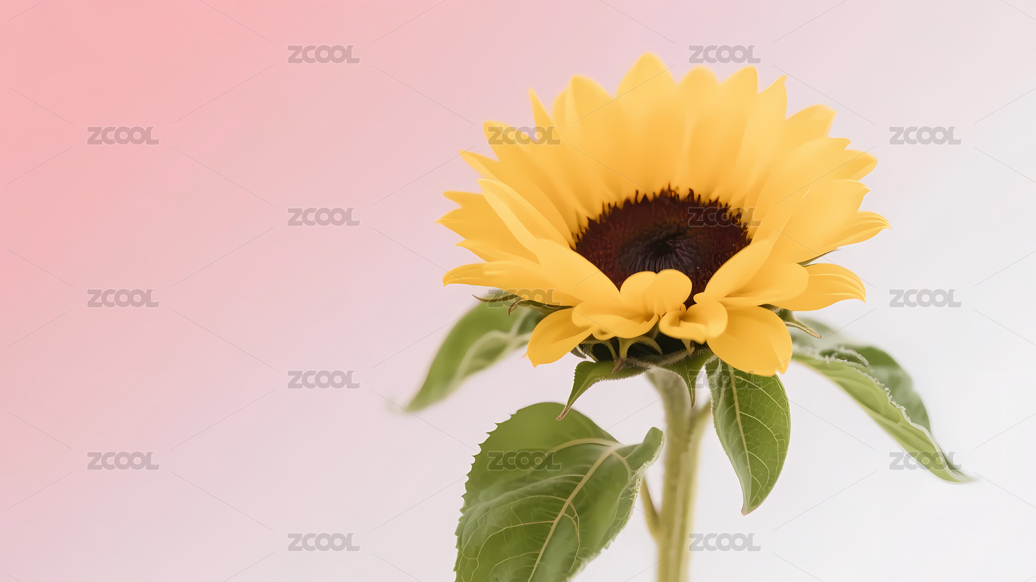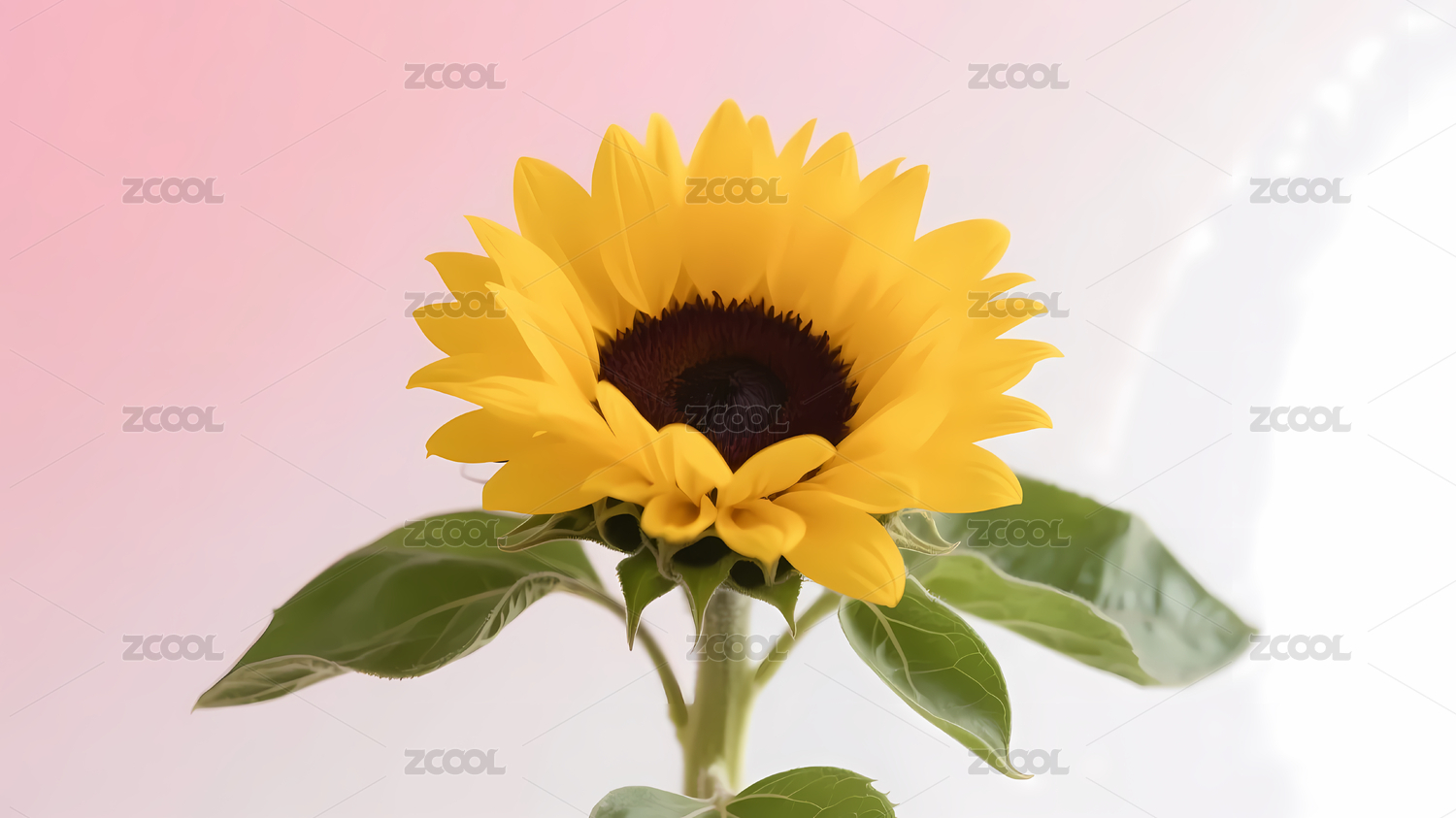 黄向日葵粉白渐变背景
