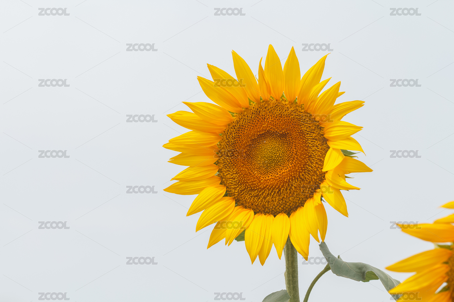 白色背景中的一片黄色向日葵花