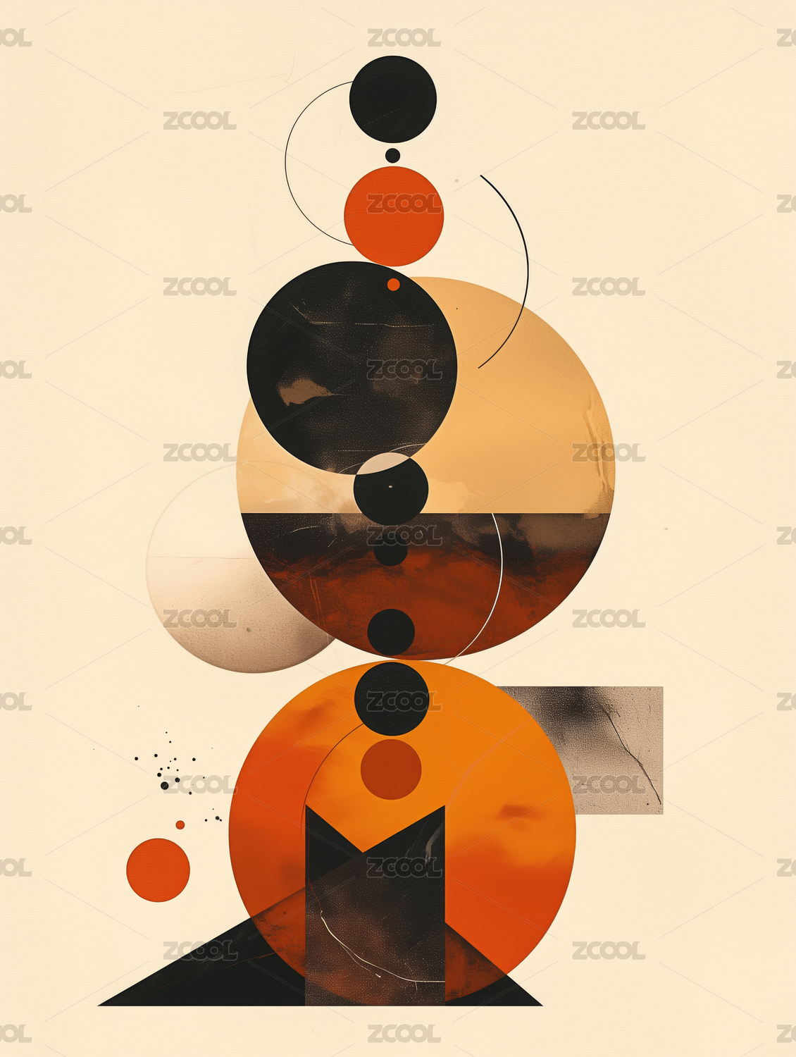 几何图形组合成的抽象复古风格艺术作品
