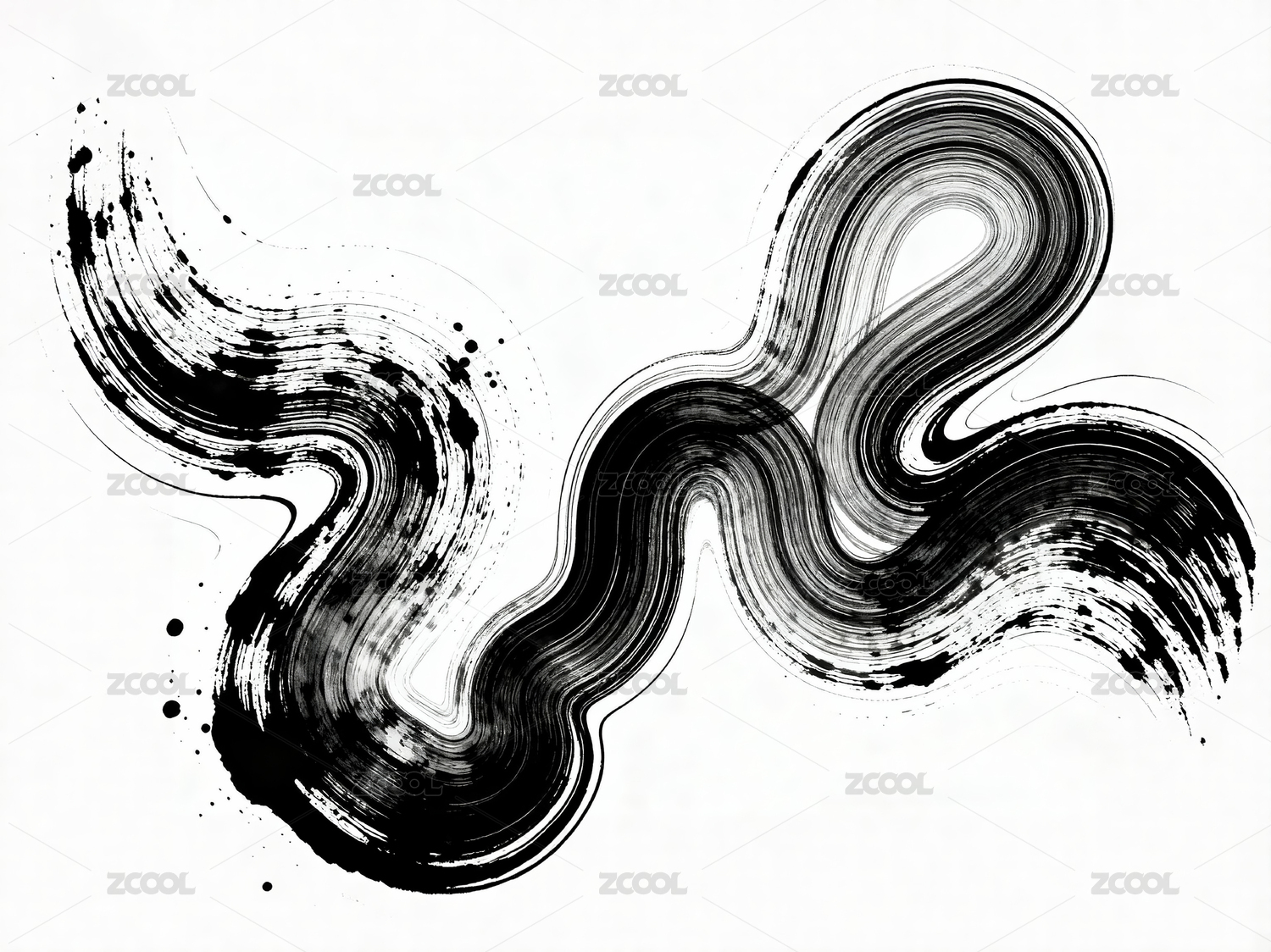 黑白的抽象墨迹笔刷泼墨艺术