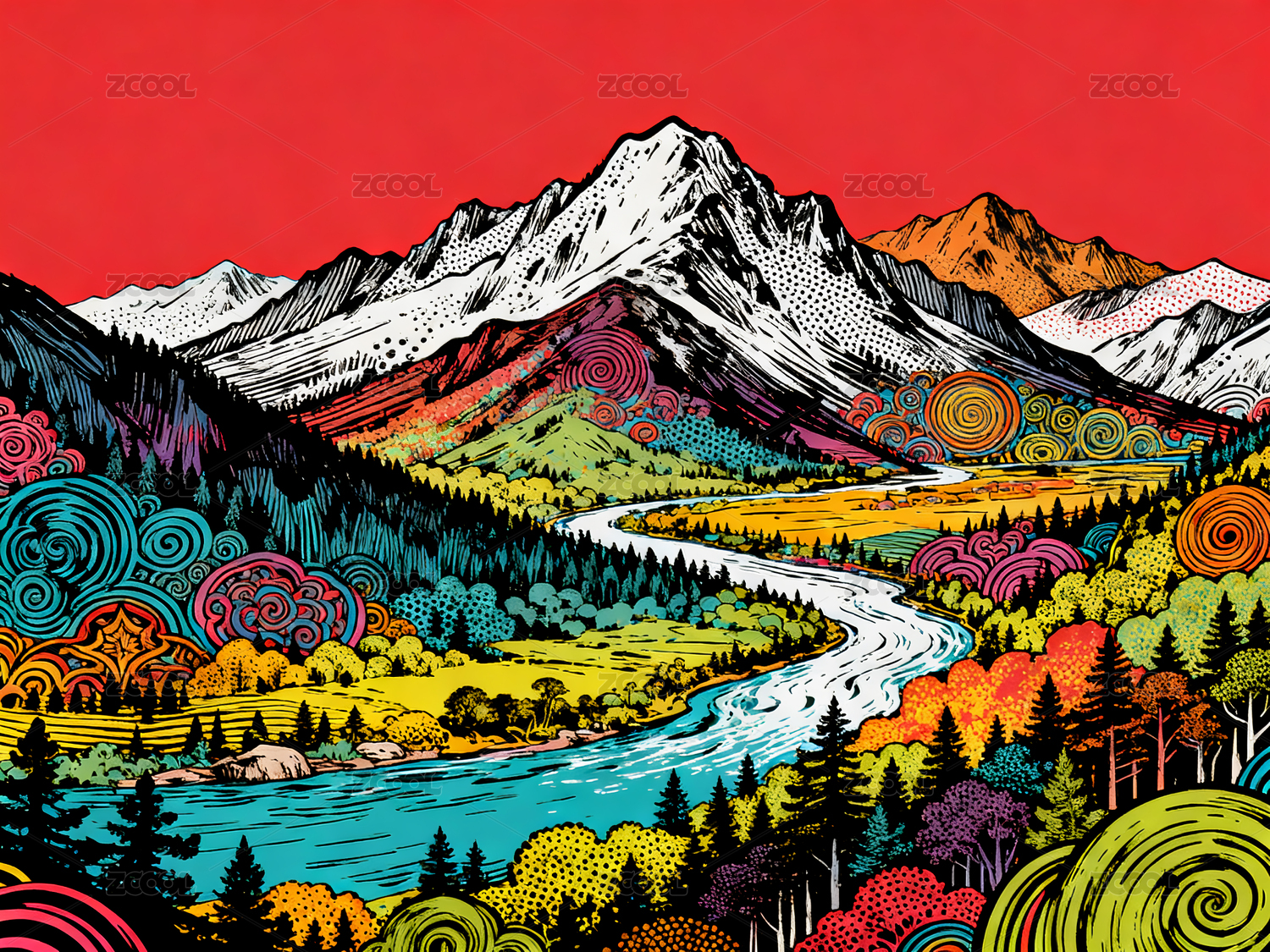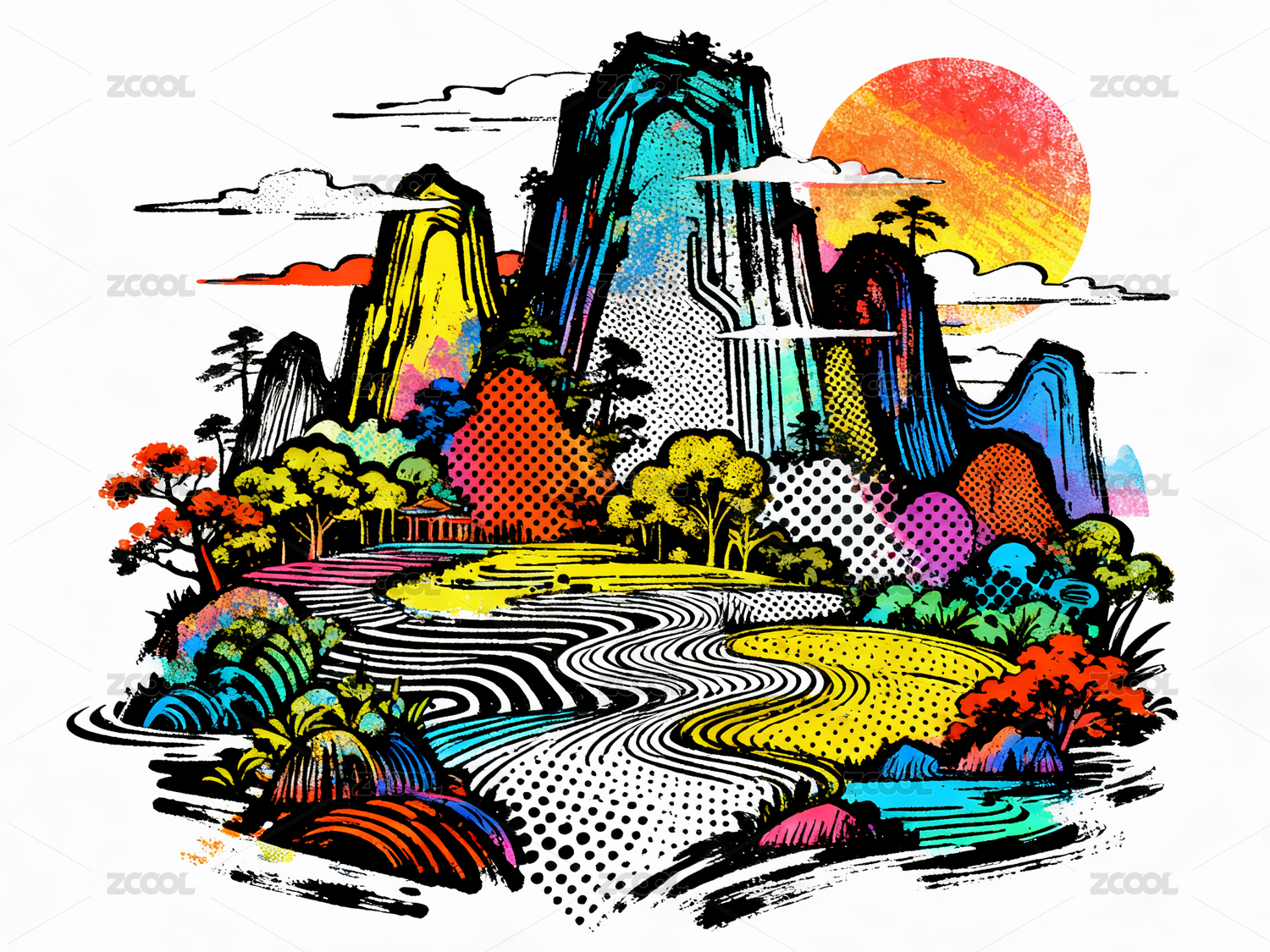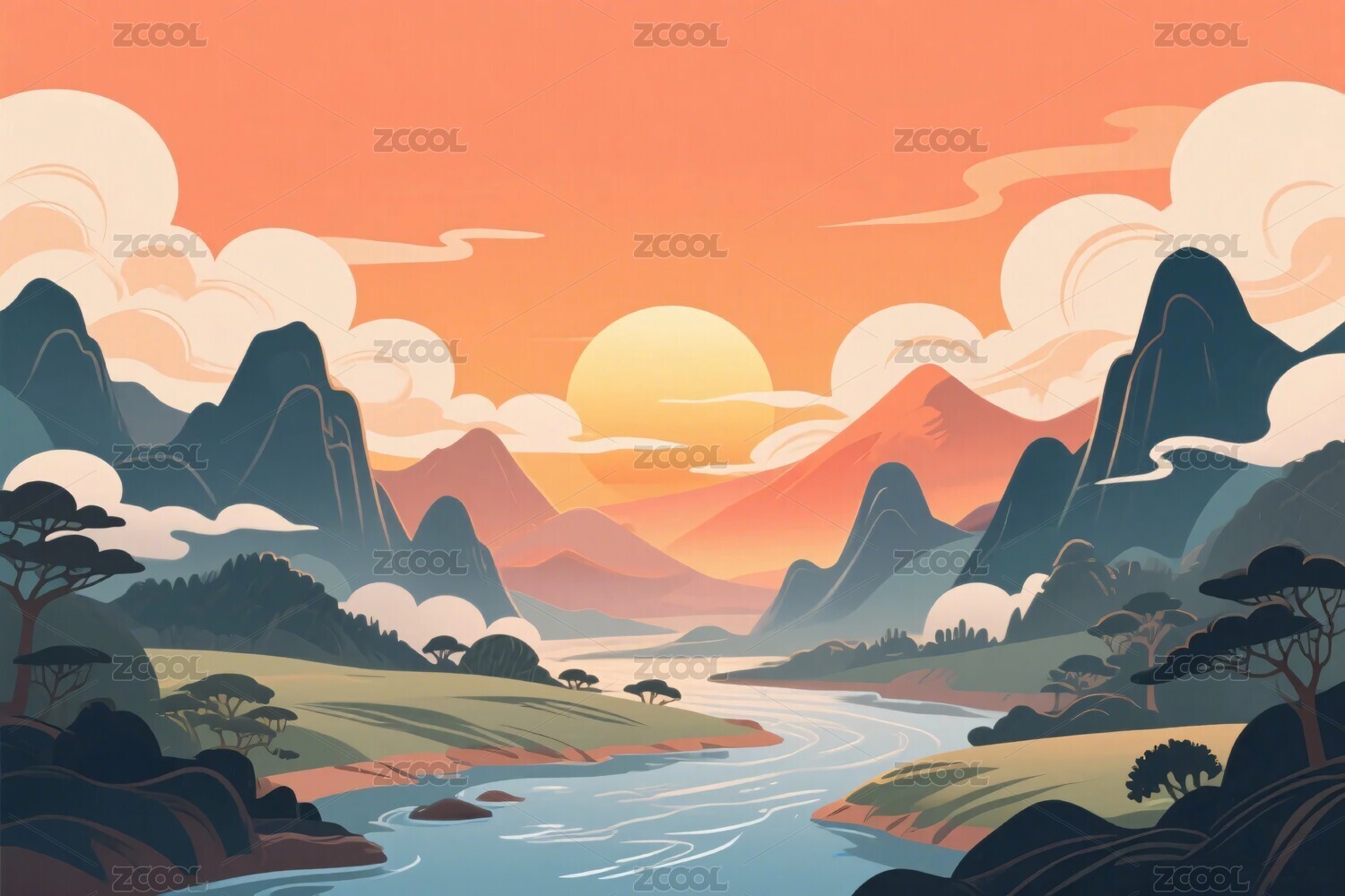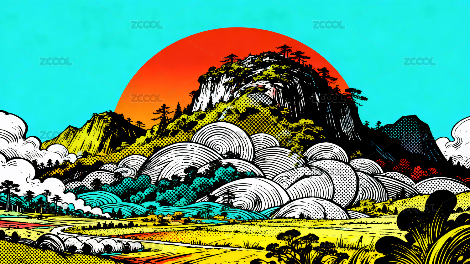 传统,文化,图案,装饰,背景,风光,风景,插画,绘画,超现实