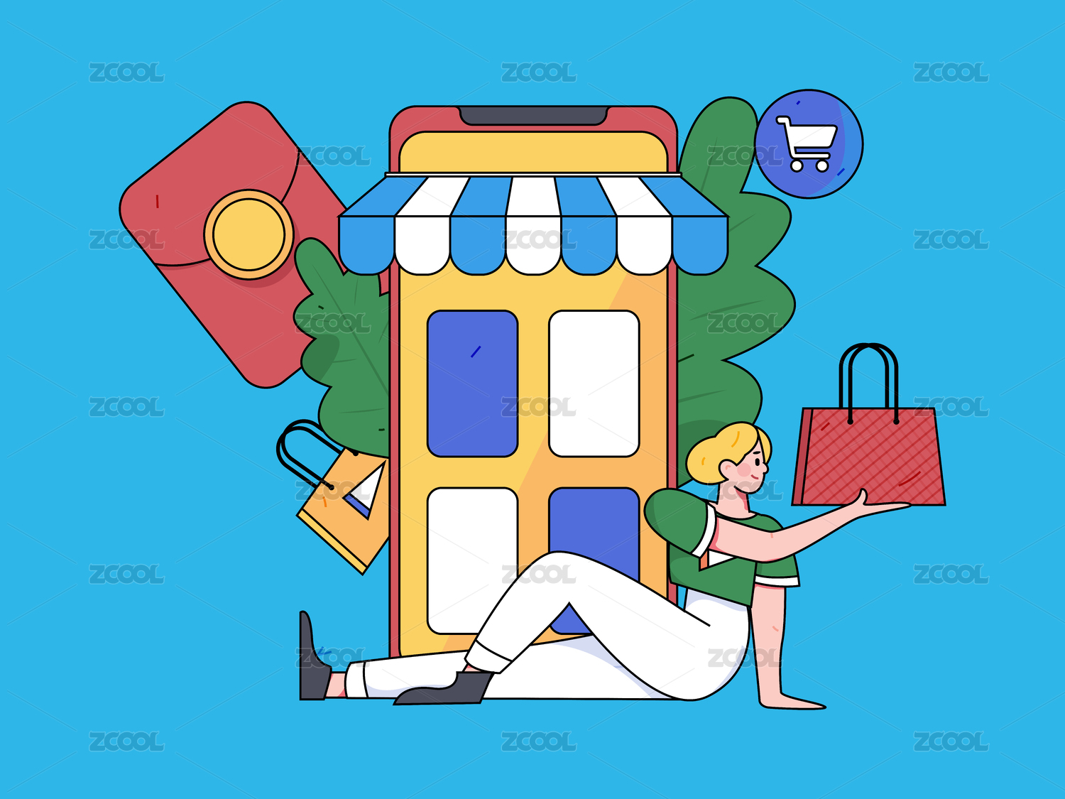 扁平风购物场景插画