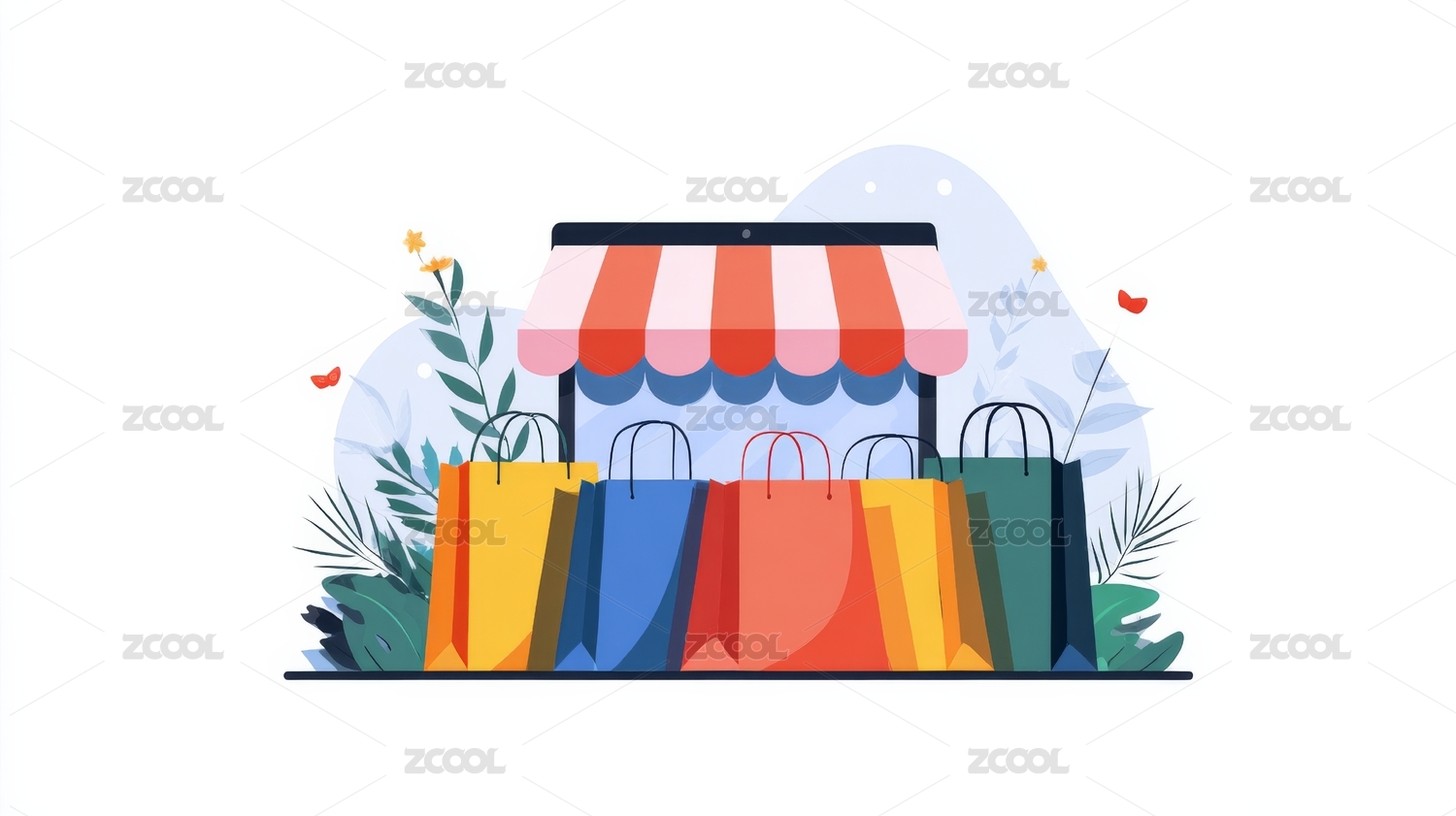 网购商店与购物袋