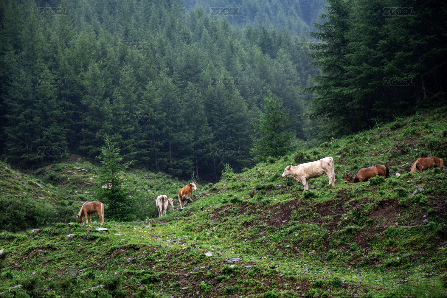 甘孜县曲洛色依山沟吉山吃草的马匹