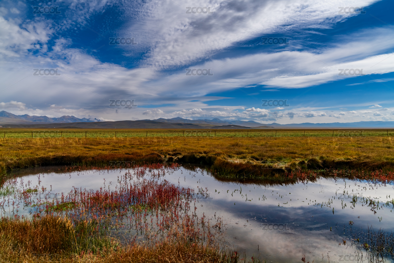 四川阿坝若尔盖花湖风景区的湿地和沼泽风光