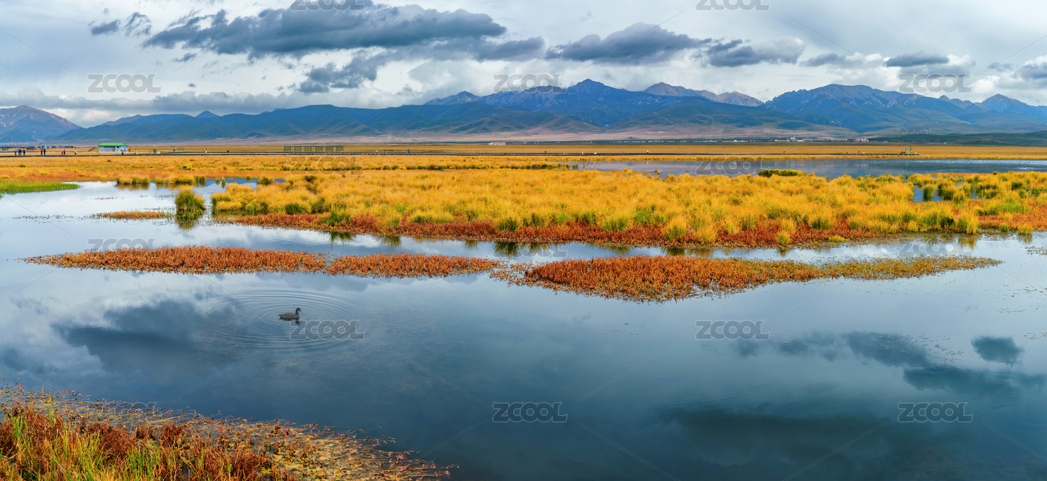 若尔盖,湿地,阴天,金色,秋景,旅行,四川