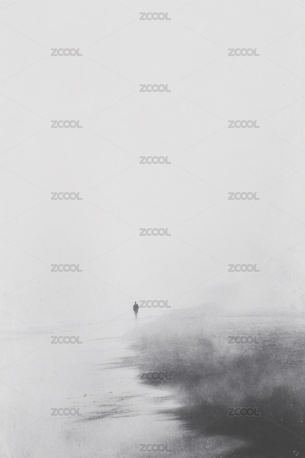 雾中独行者海边景象