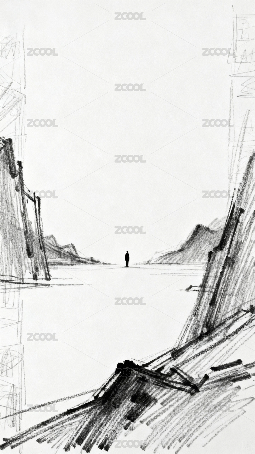 线条,艺术,素描,背影,孤独,山水,风景,人物,意境,黑白
