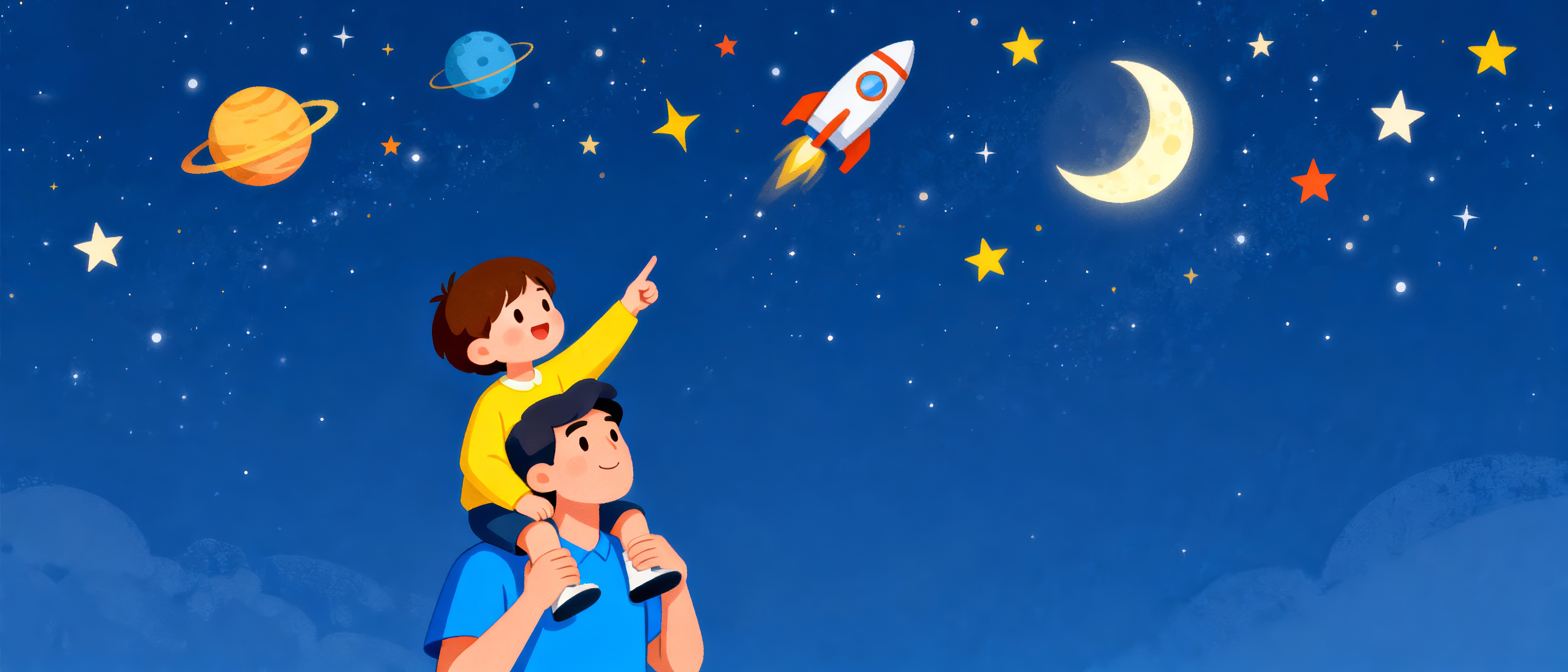 小女孩乘坐火箭探索太空 儿童节主题插画