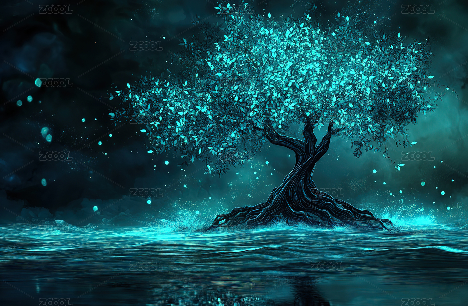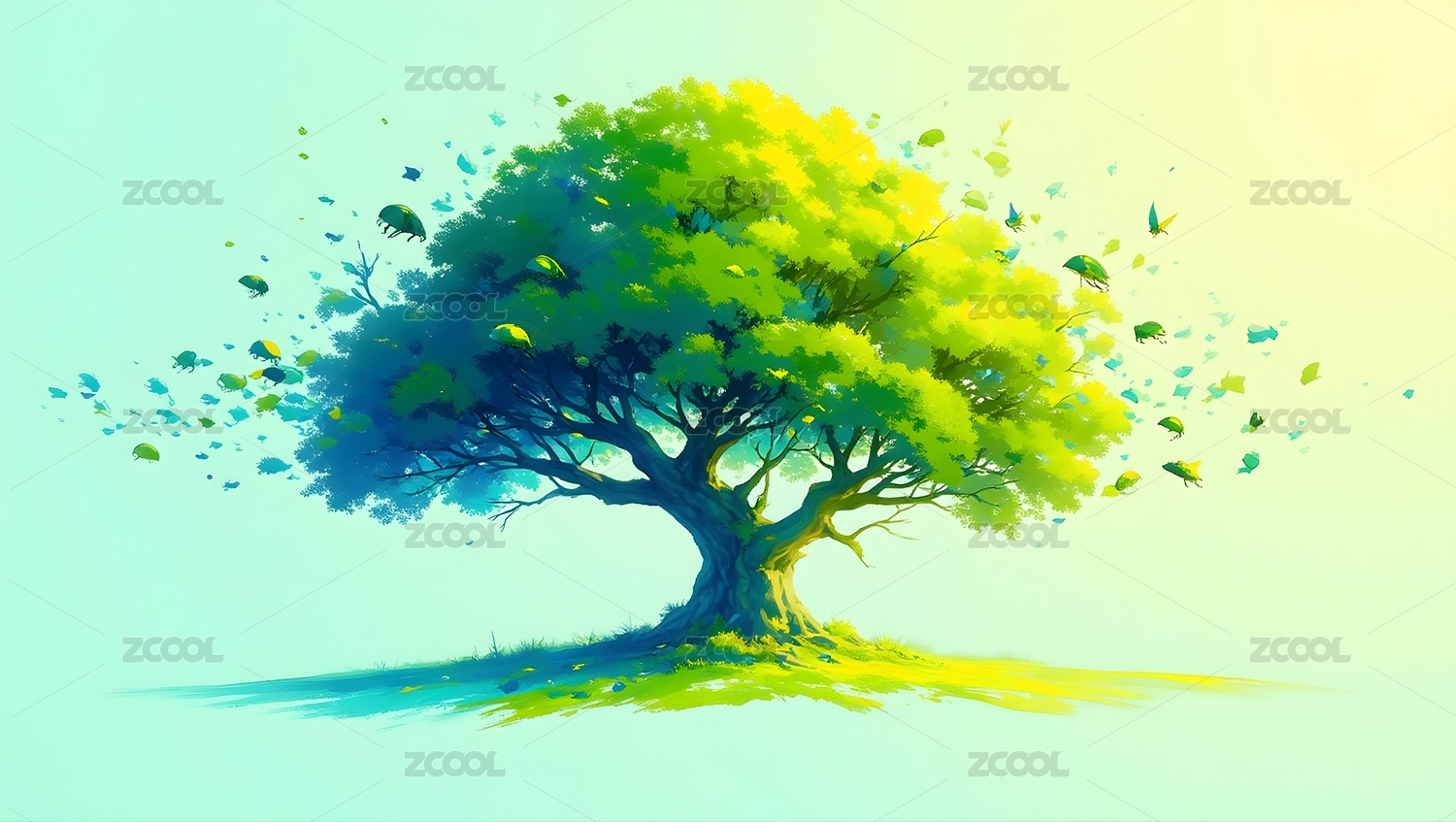 自然,蓝色,树叶,色彩,梦幻,背景,绿色,抽象,流动,设计