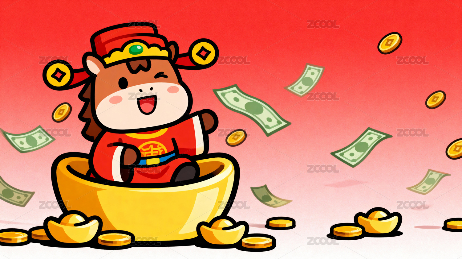 红色,帽子,装饰,金币,财富,卡通,眼睛,耳朵,嘴巴,毛发
