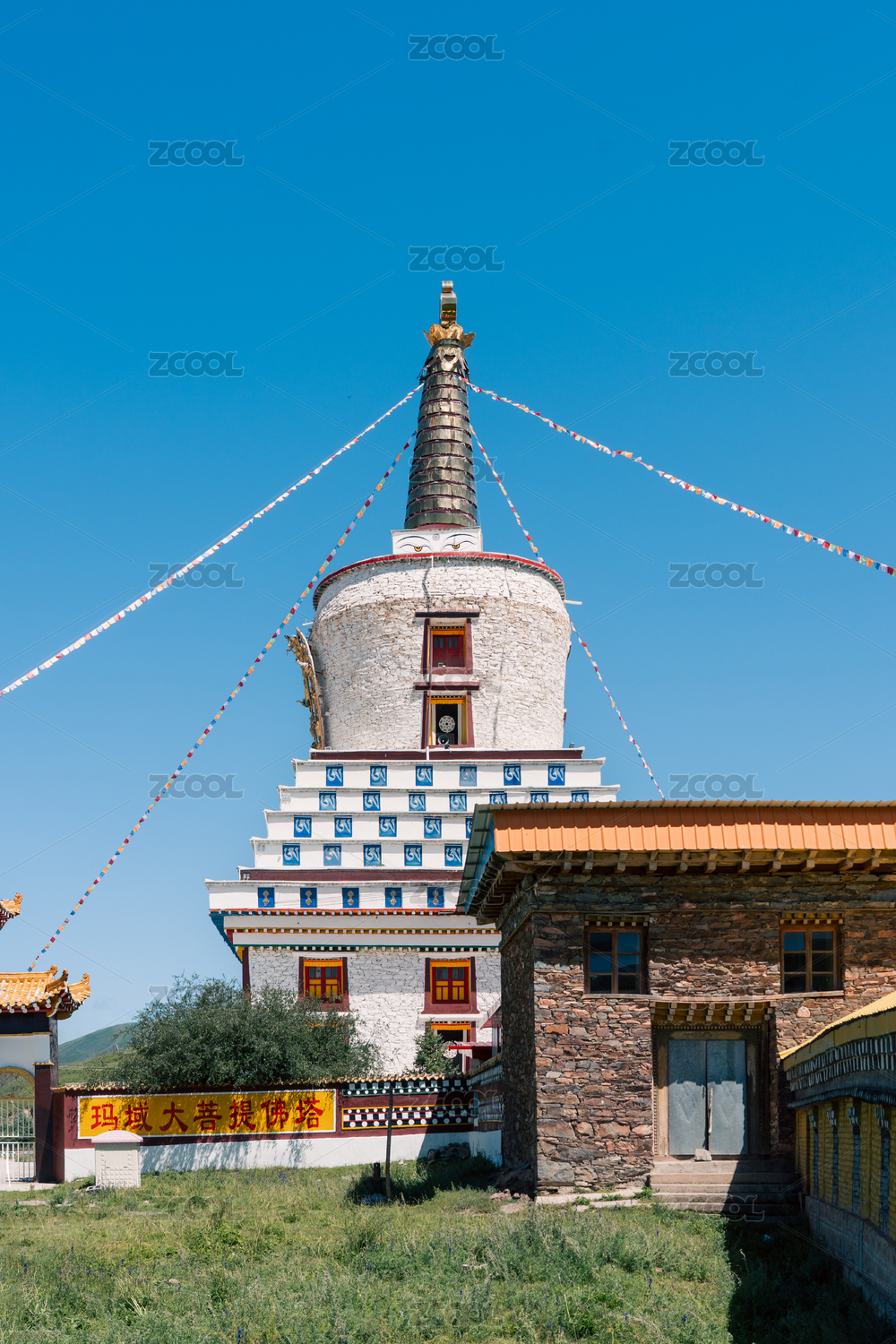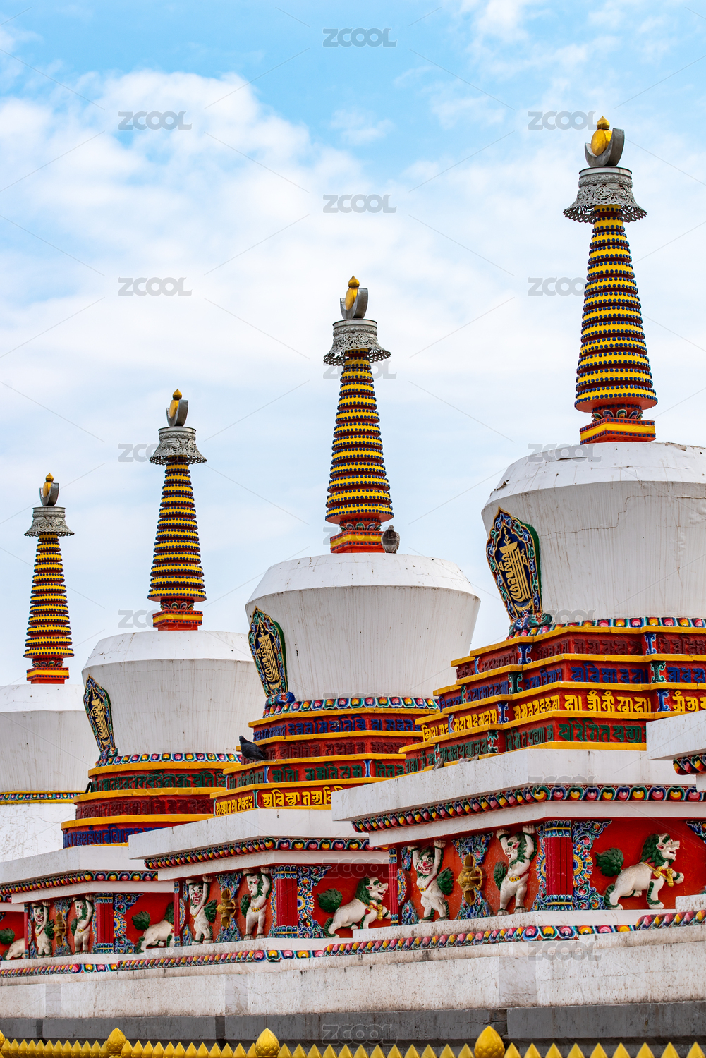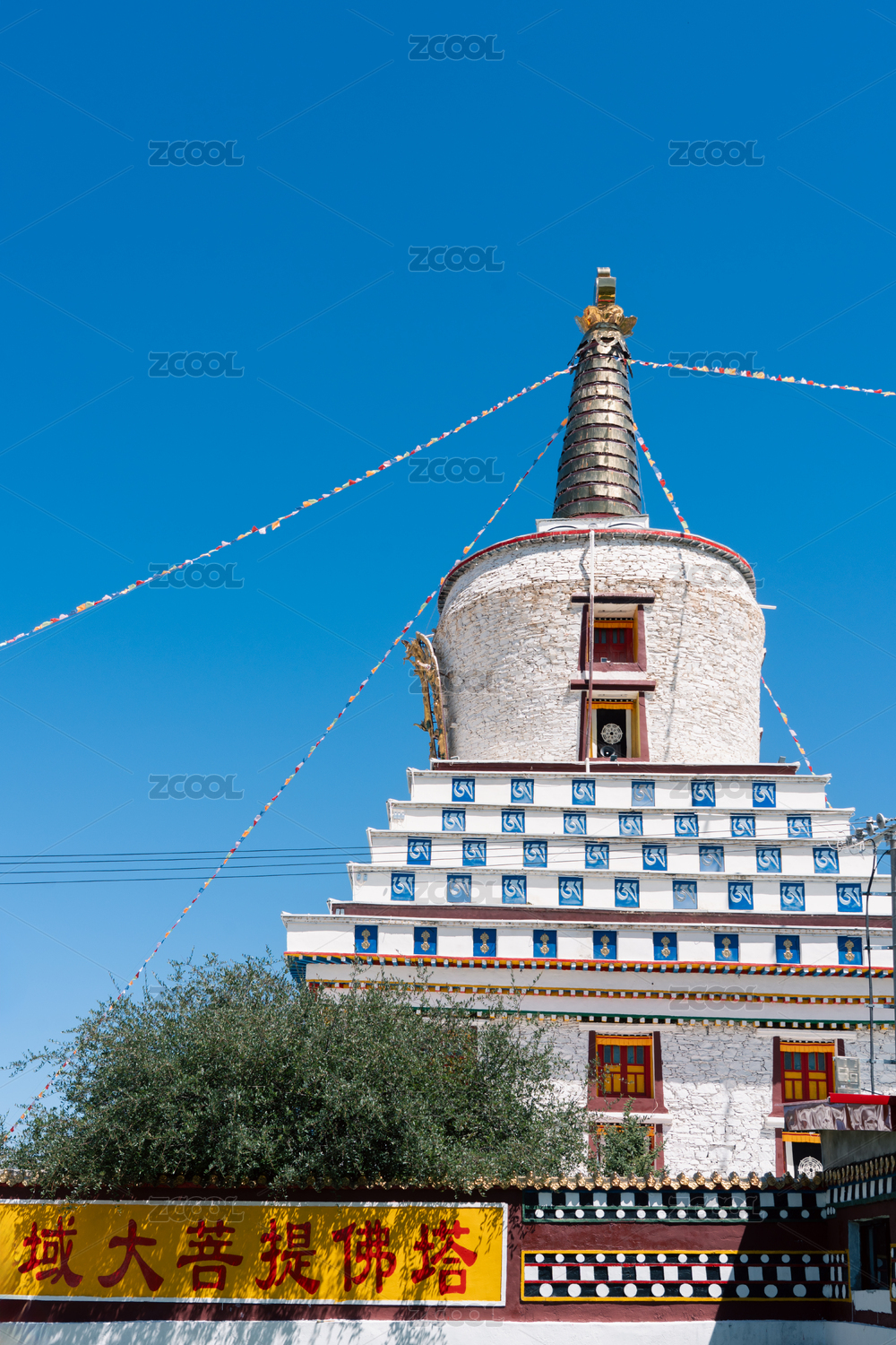 天空下青海省湟中塔尔寺入口处的的白色菩提塔