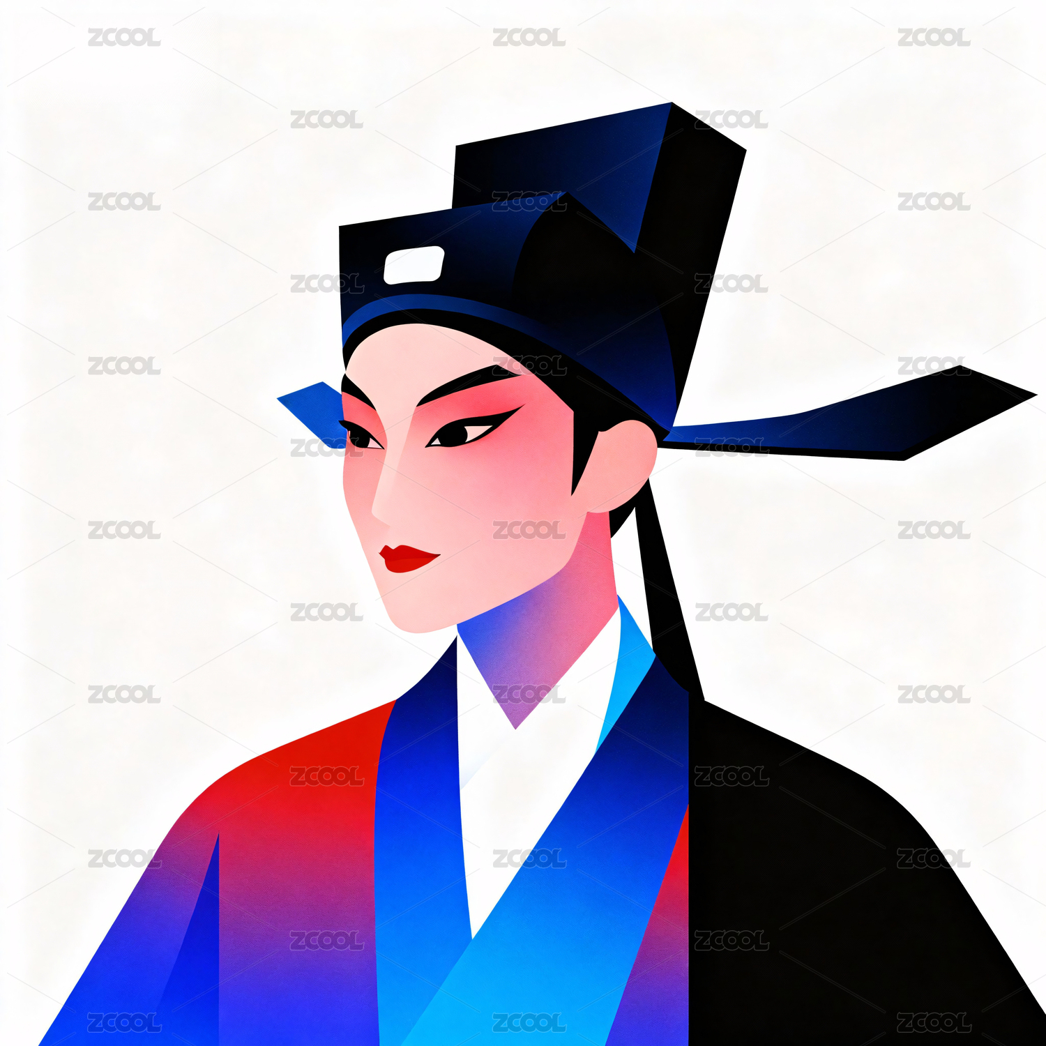 京剧青衣高级感平面插画