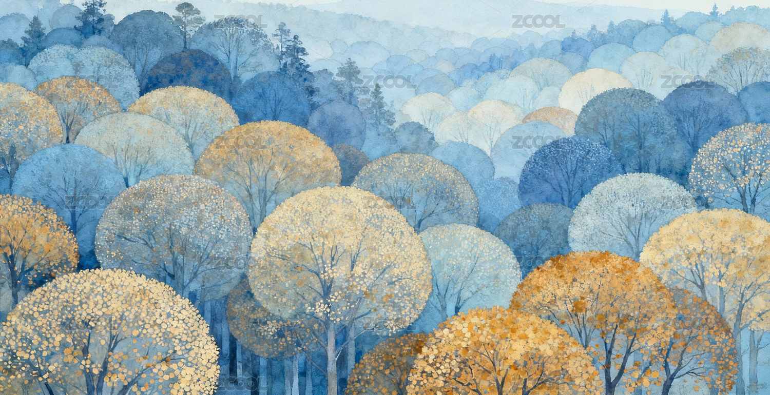 蓝调森林水彩画