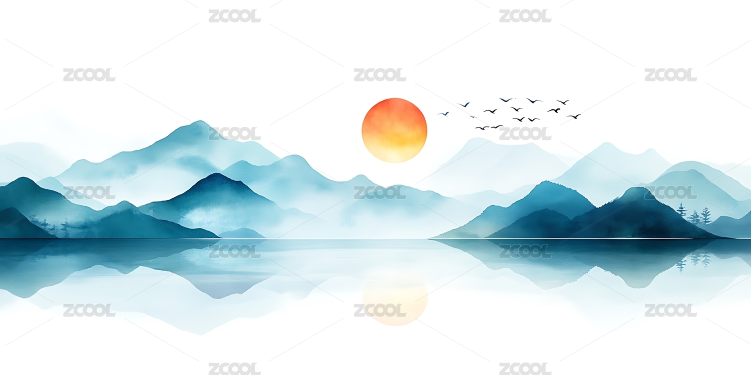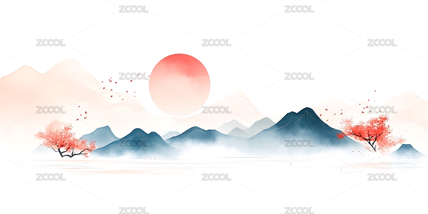 水墨山水日落