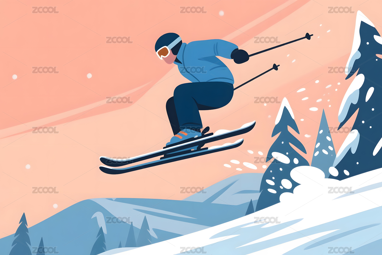 冬天雪景滑雪插画背景