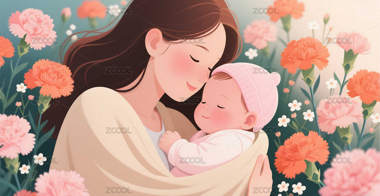 3D,卡通,母婴,婴儿,母亲,母亲节,插画,背景,壁纸,花朵