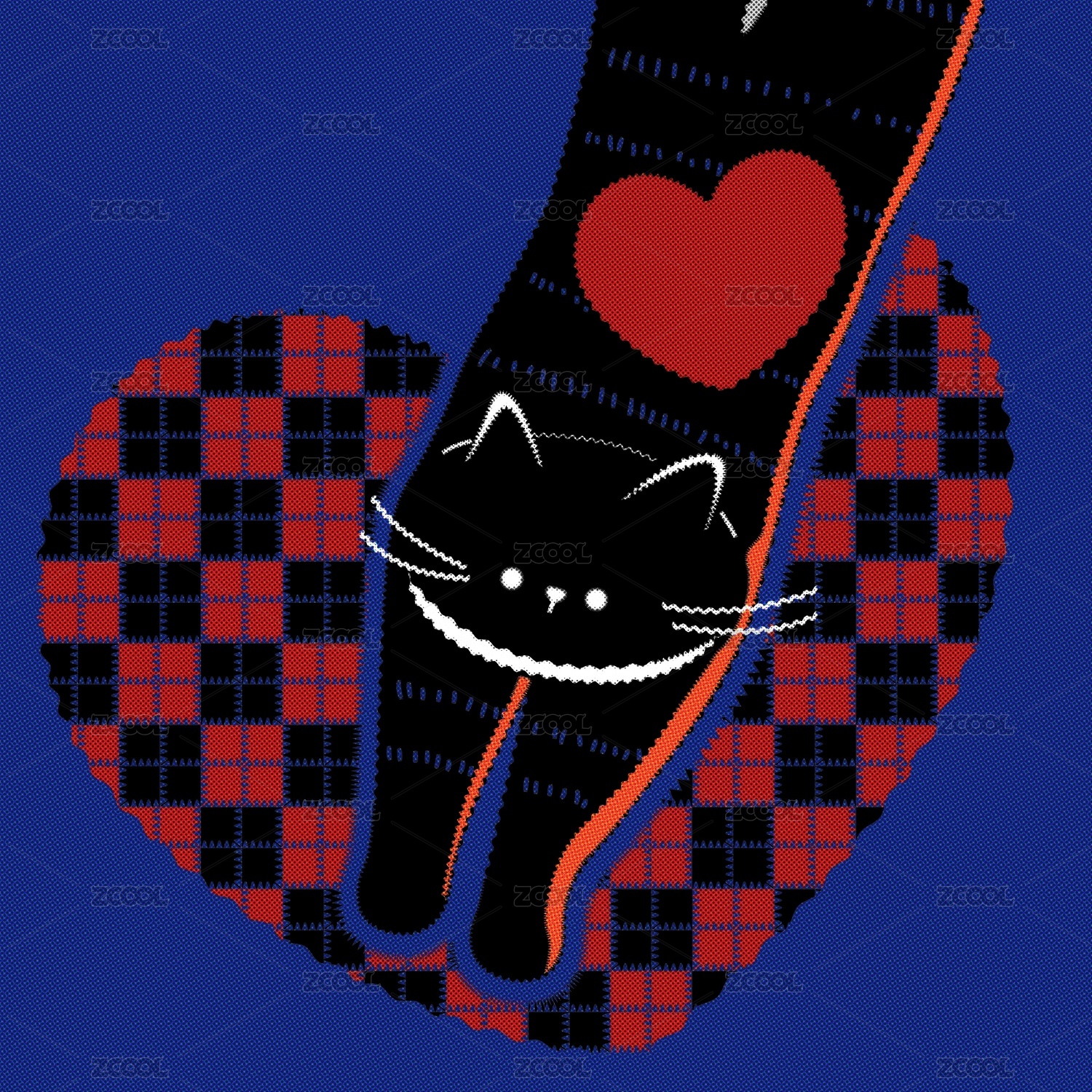 格纹猫插画