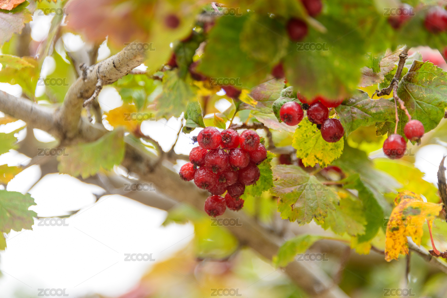 枝头红山楂特写