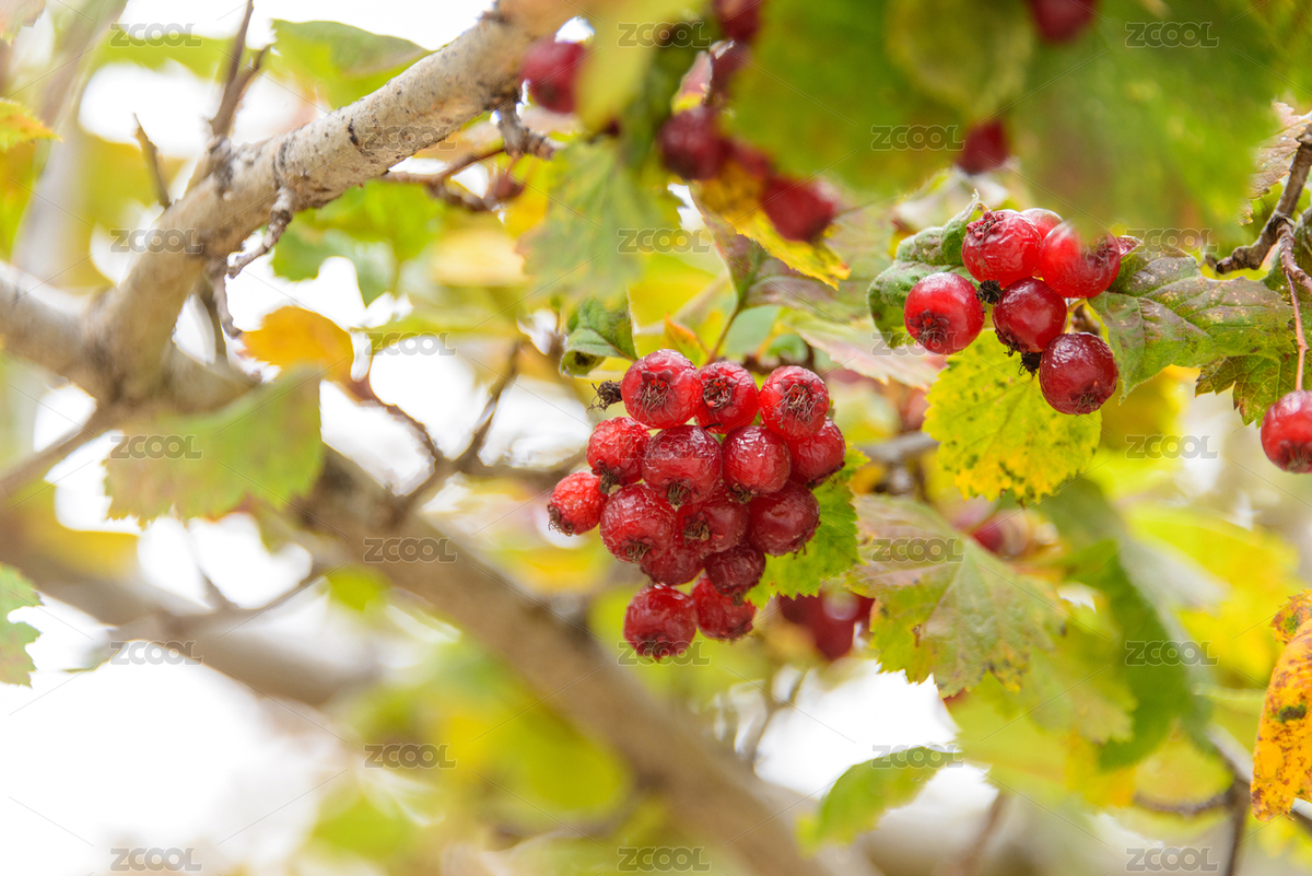 山楂树成熟了,树上生长美味可口的山楂果特
