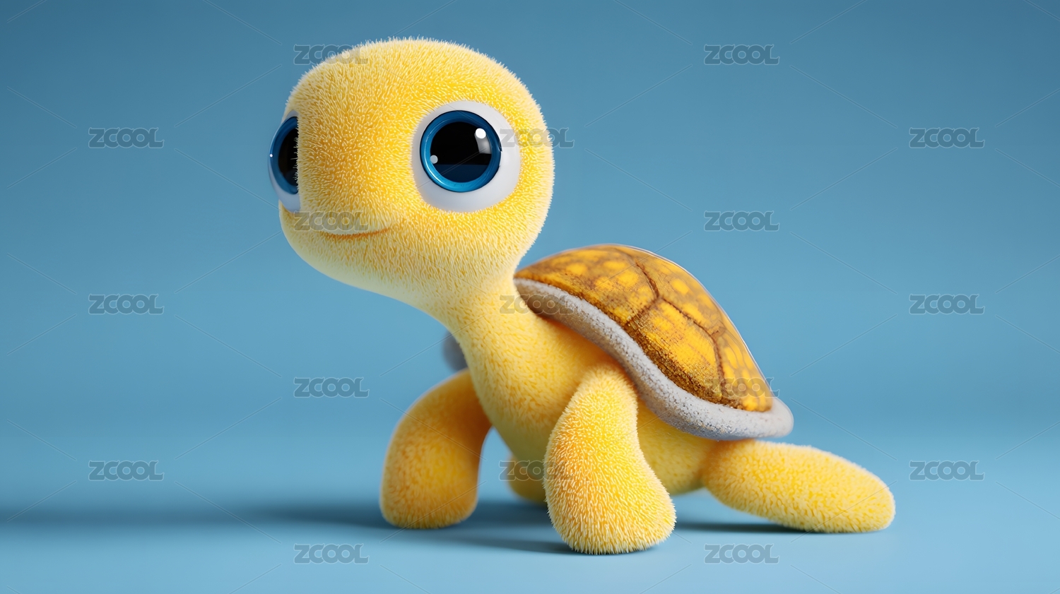卡通小海龟蓝色背景毛茸茸可爱
