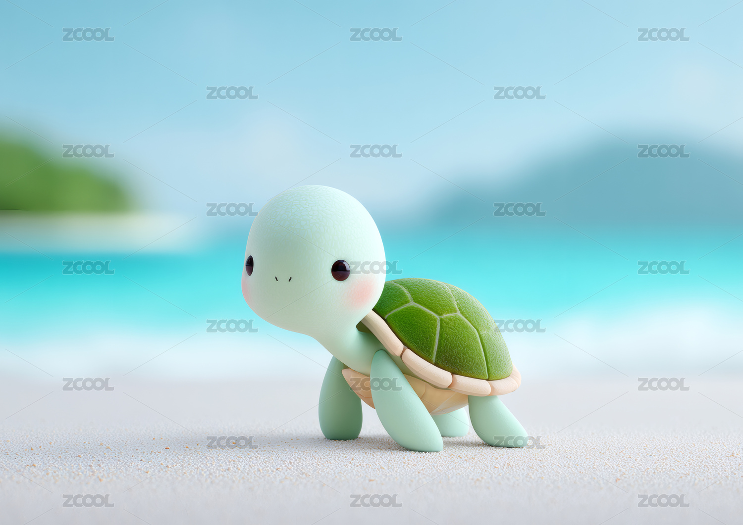 海边沙滩上一只可爱的卡通小海龟