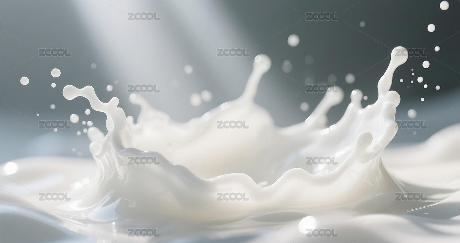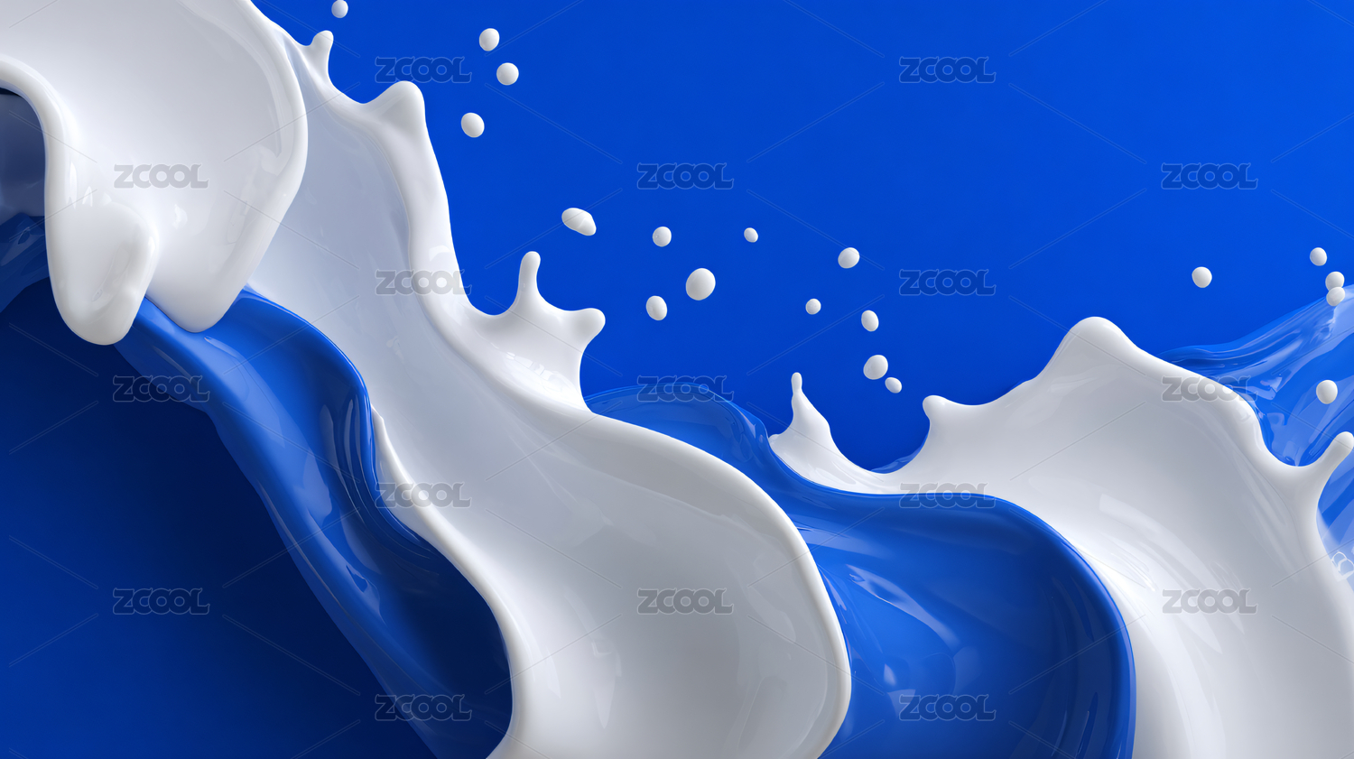 飞溅牛奶液滴与渐变蓝色背景的动态效果