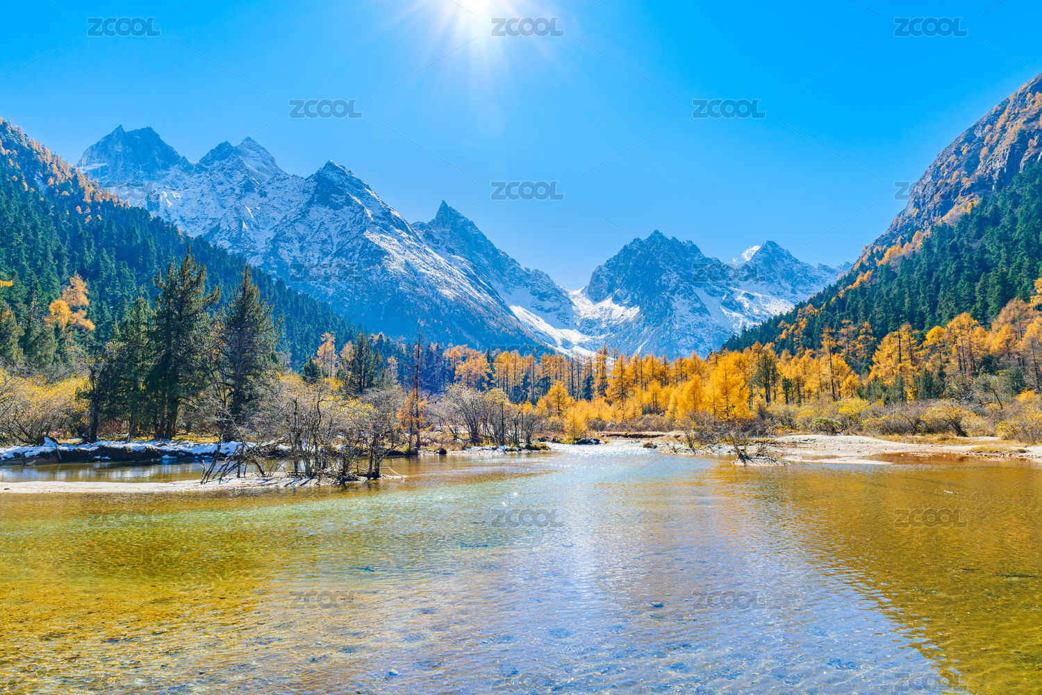 中国四川省稻城亚丁溪流秋季风光