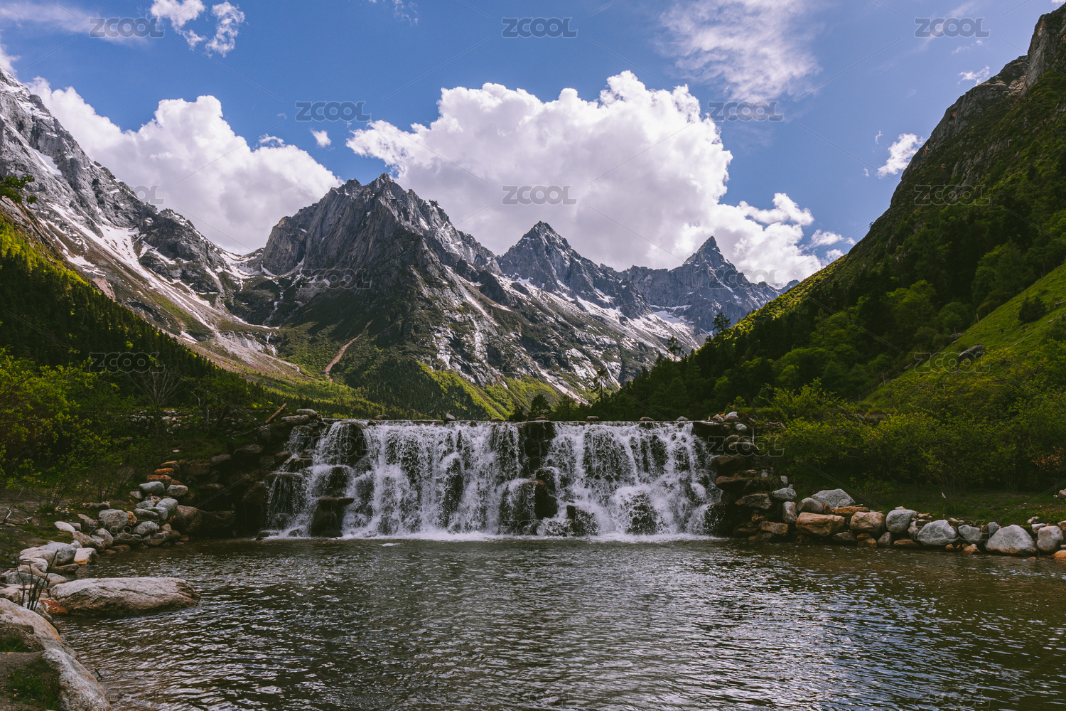 川西毕棚沟磐羊湖海子瀑布及冰川雪山