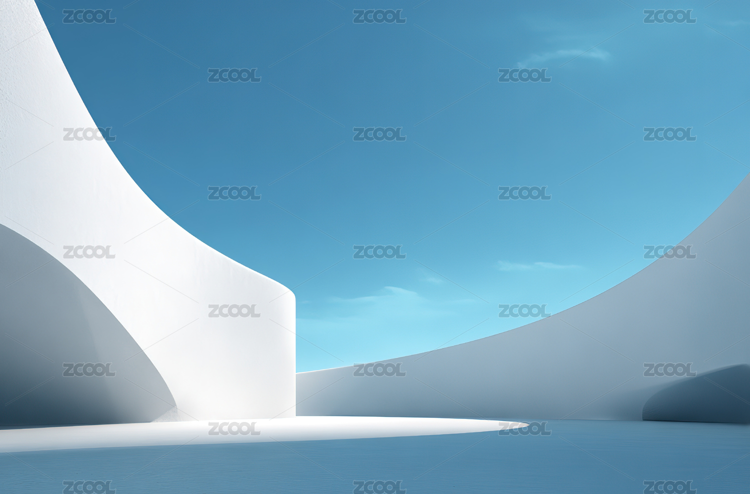 简洁的白色曲线建筑与蓝天背景