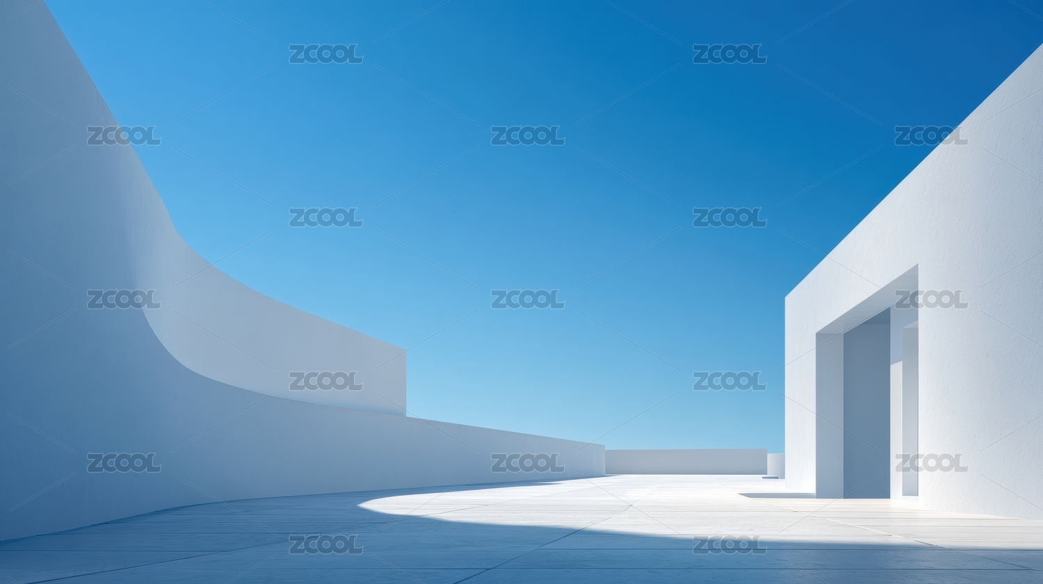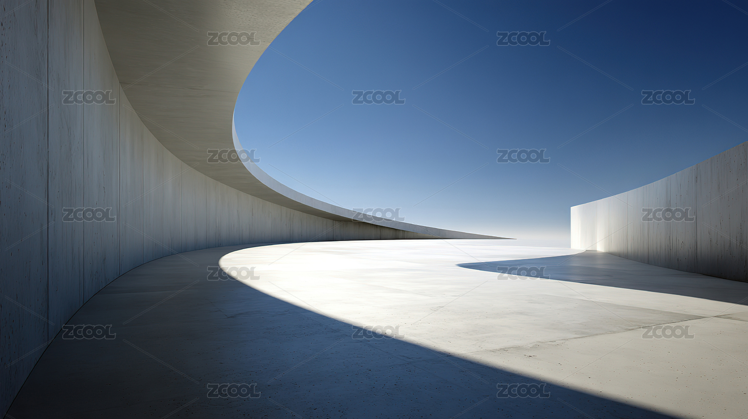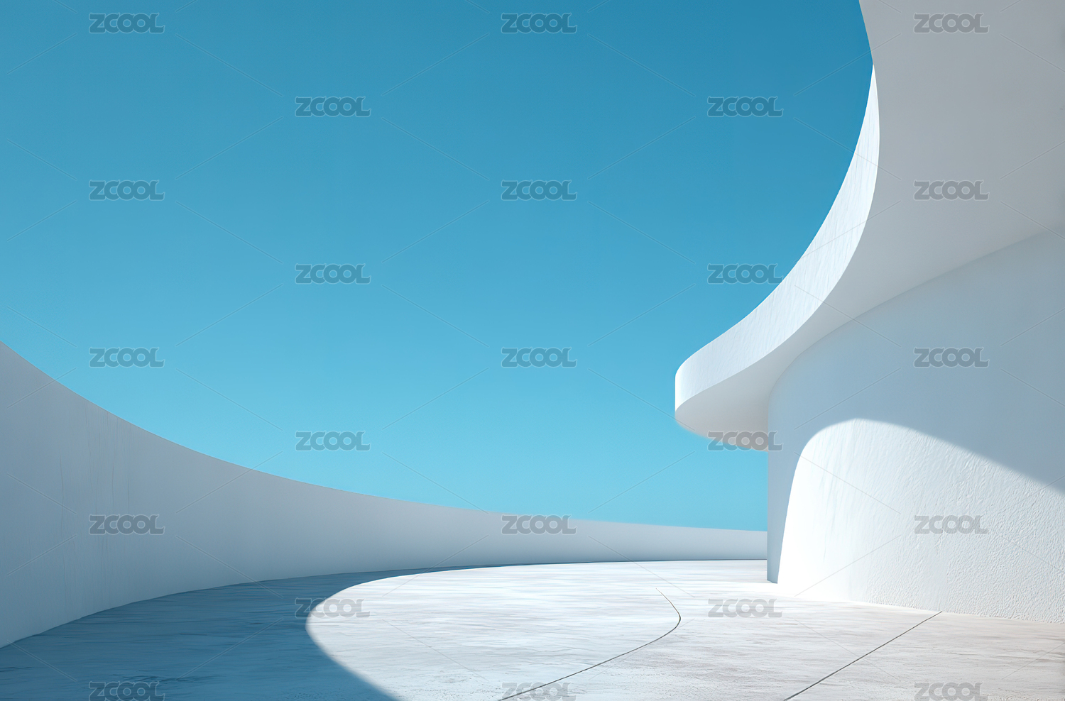 蓝色,开阔,光影,阴影,空间,曲线,天空,环境,抽象,现代