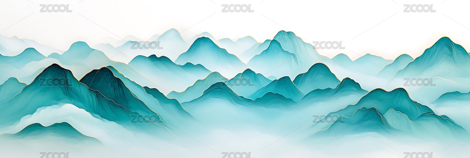 山峦,雾气,远景,水墨,国画,意境,朦胧,青色