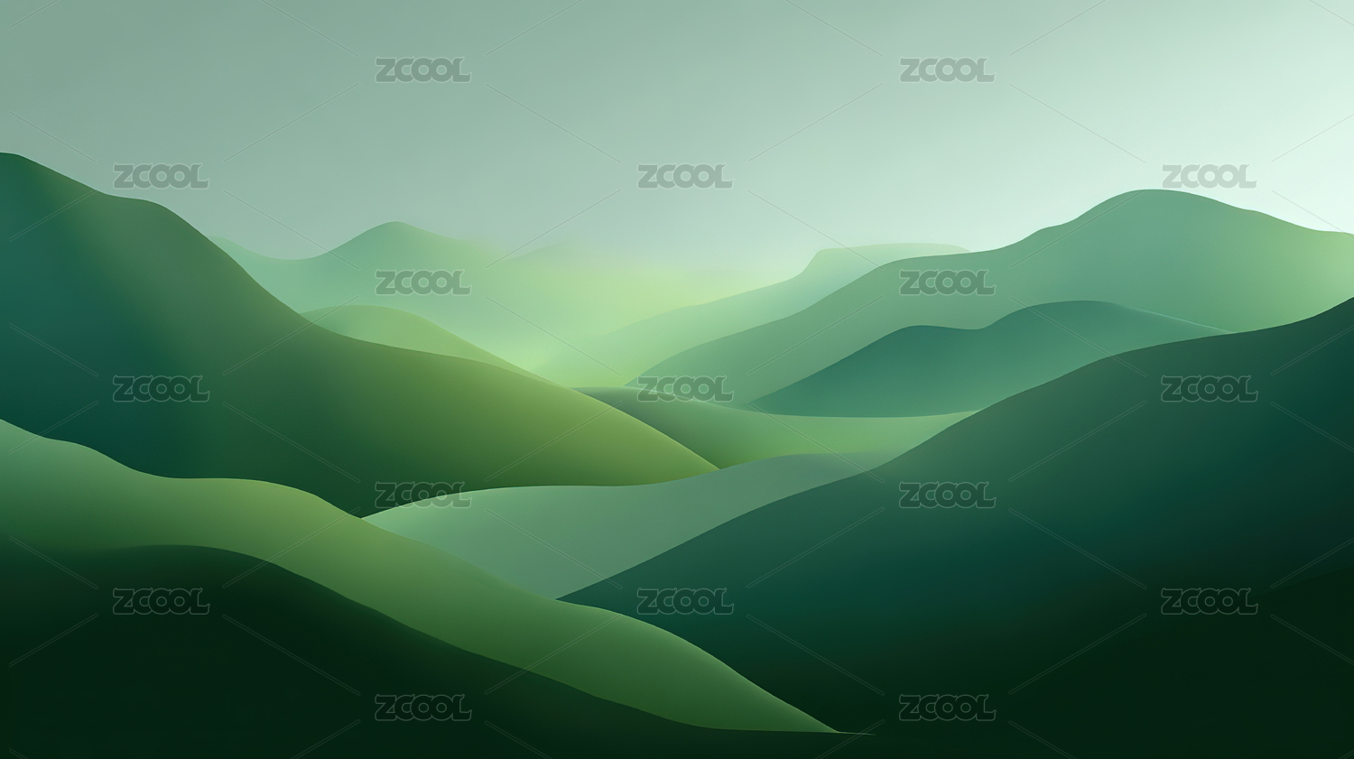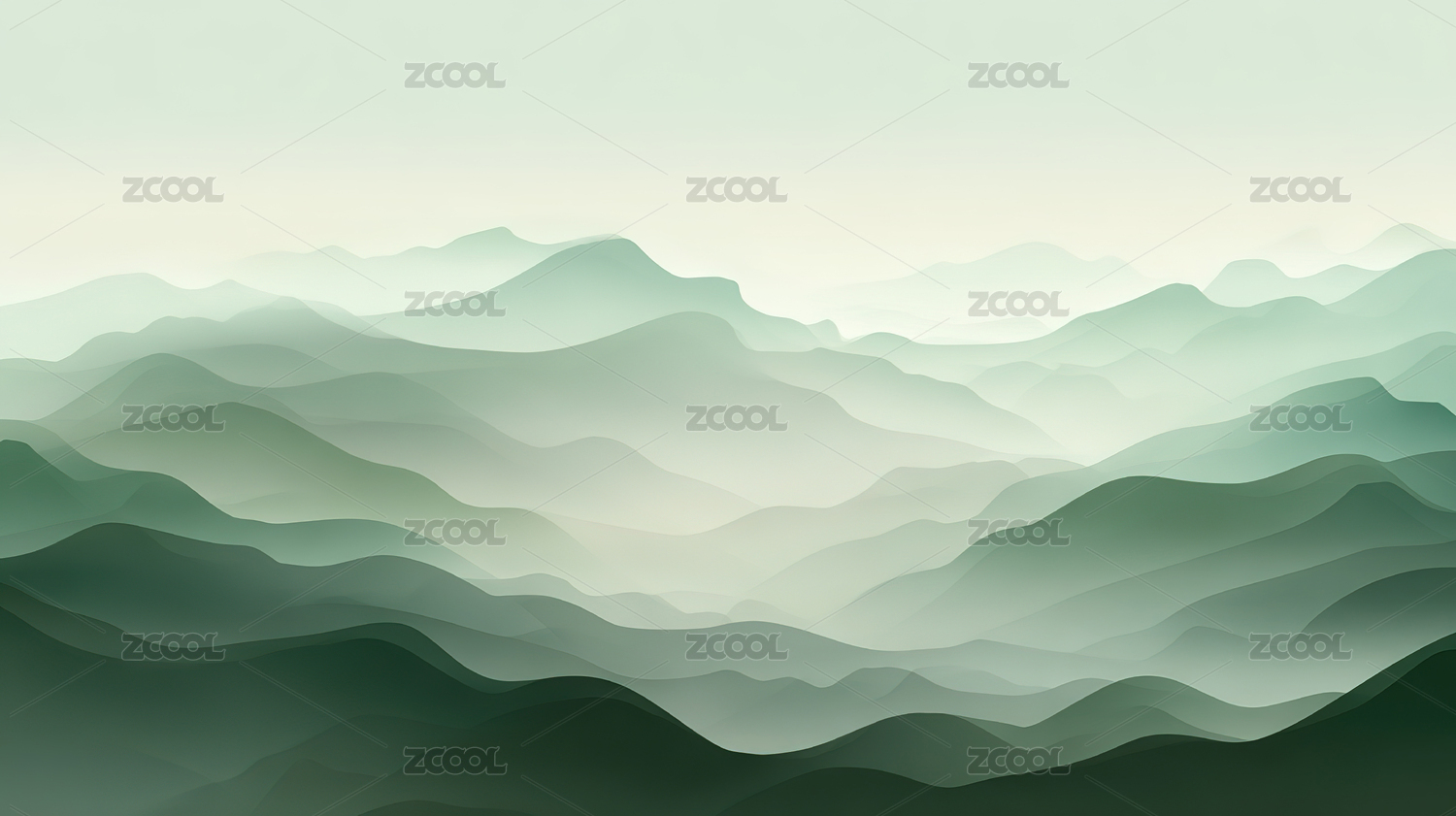 宁静,远山,山峦,朦胧,绿色,蓝色,叠翠,雾气,渐变,壮阔