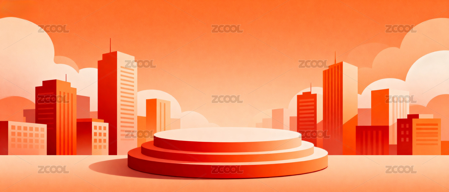 橙红色城市3D圆形电商产品展台
