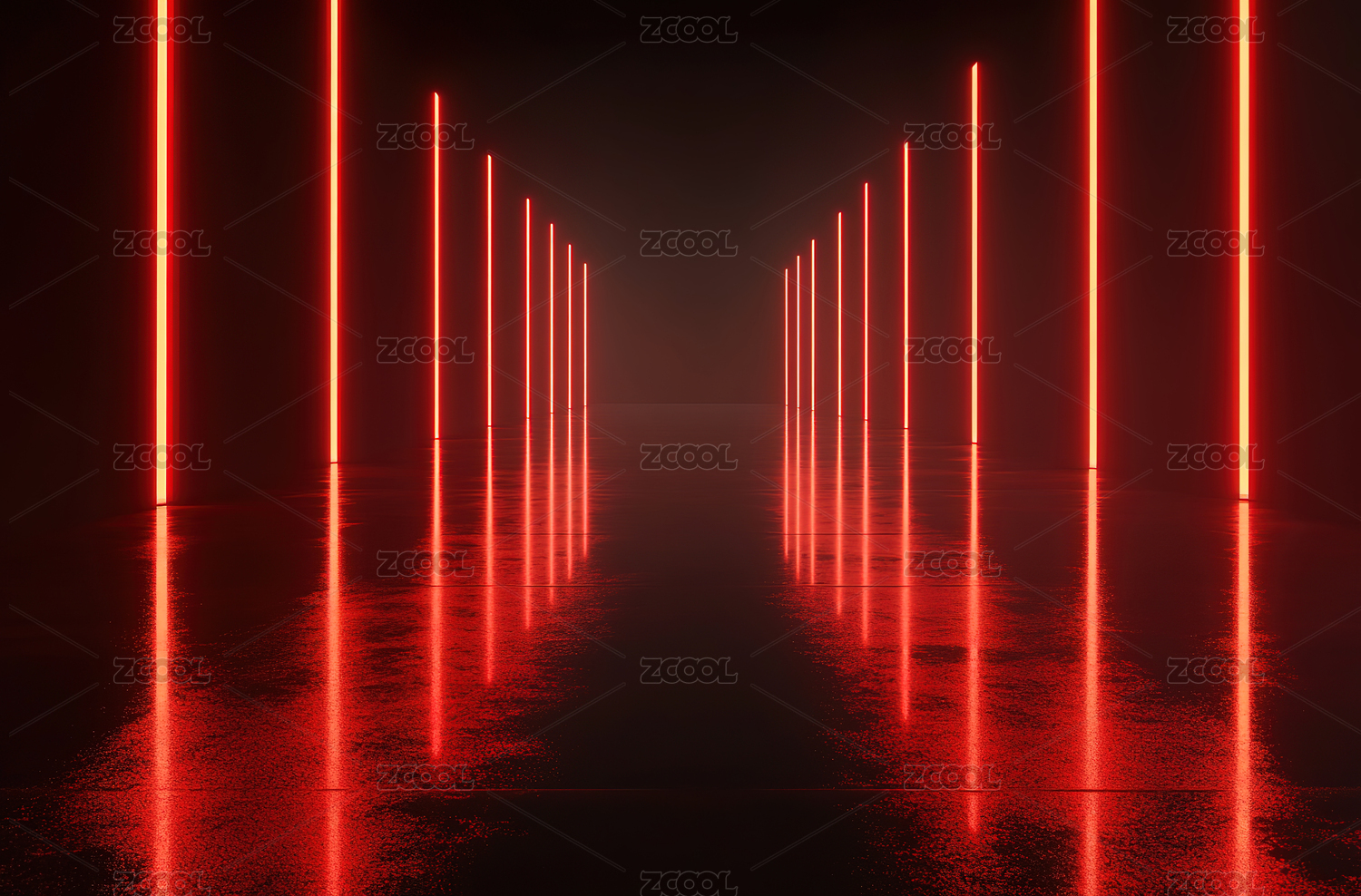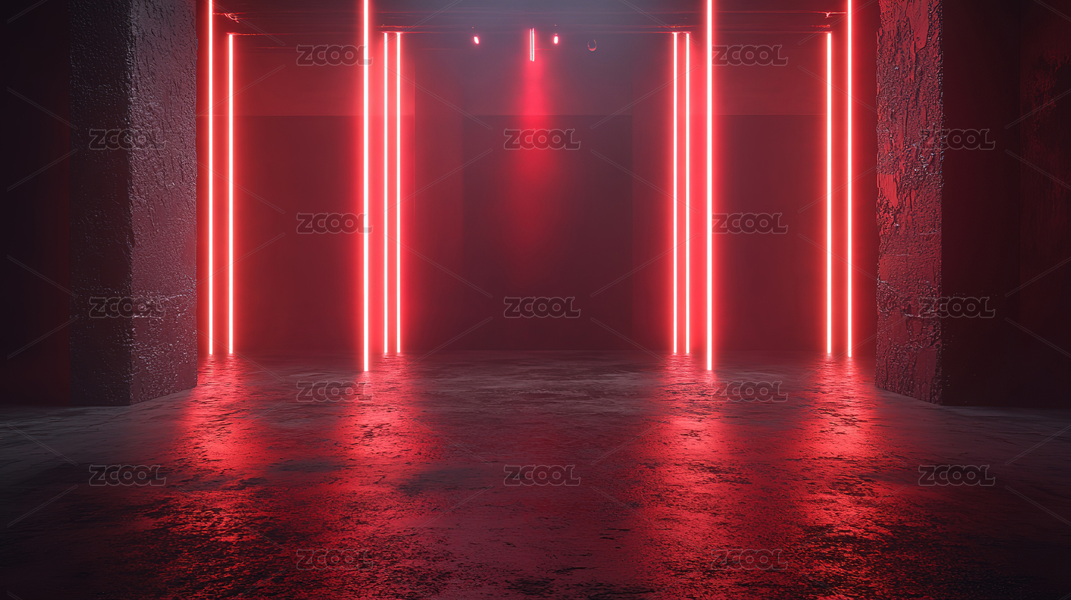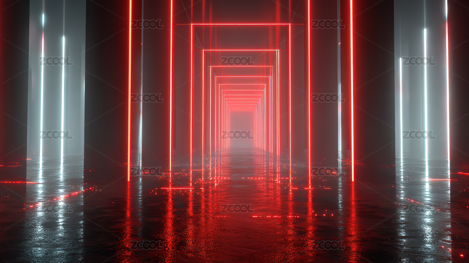 红色,未来,光影,走廊,灯光,霓虹,反射,赛博