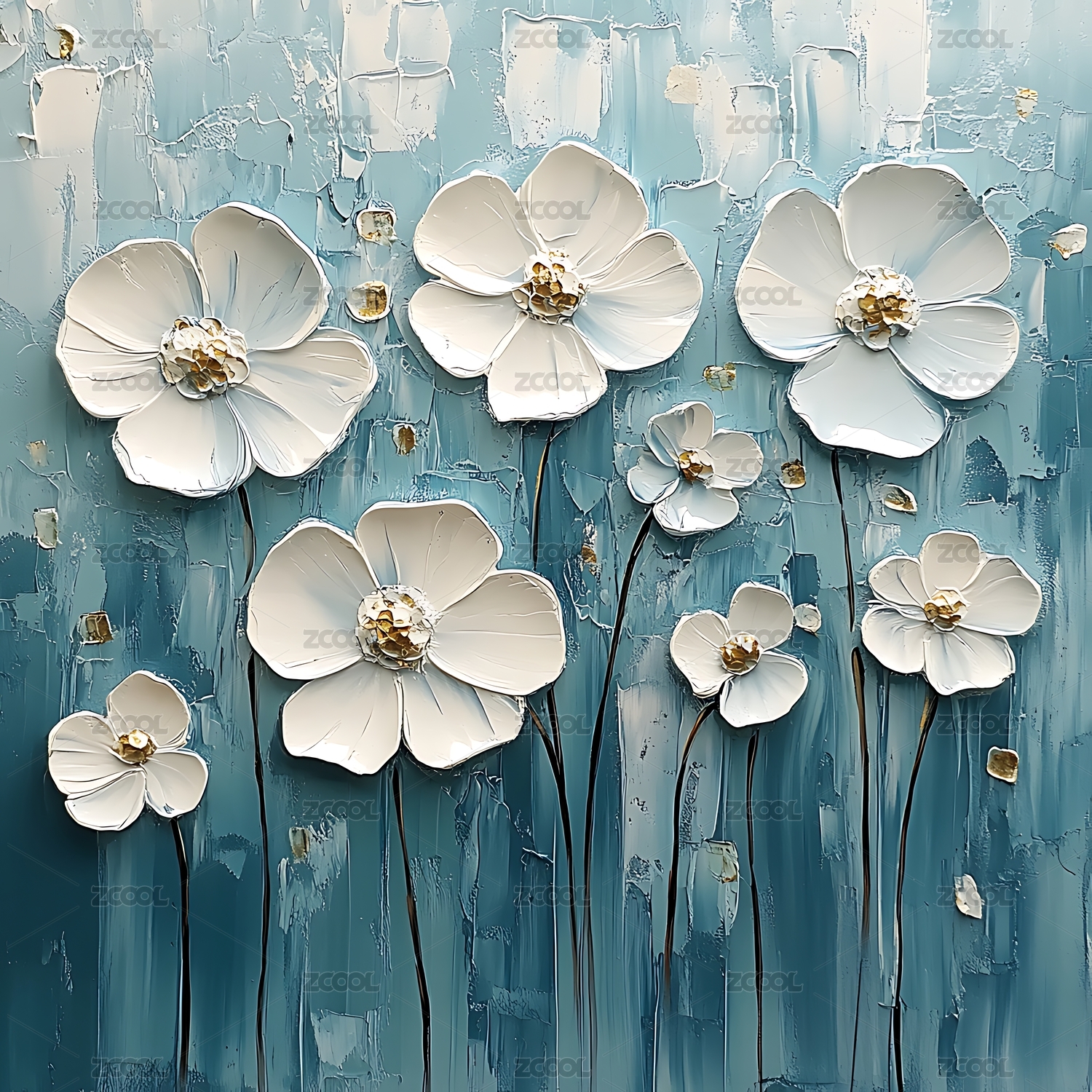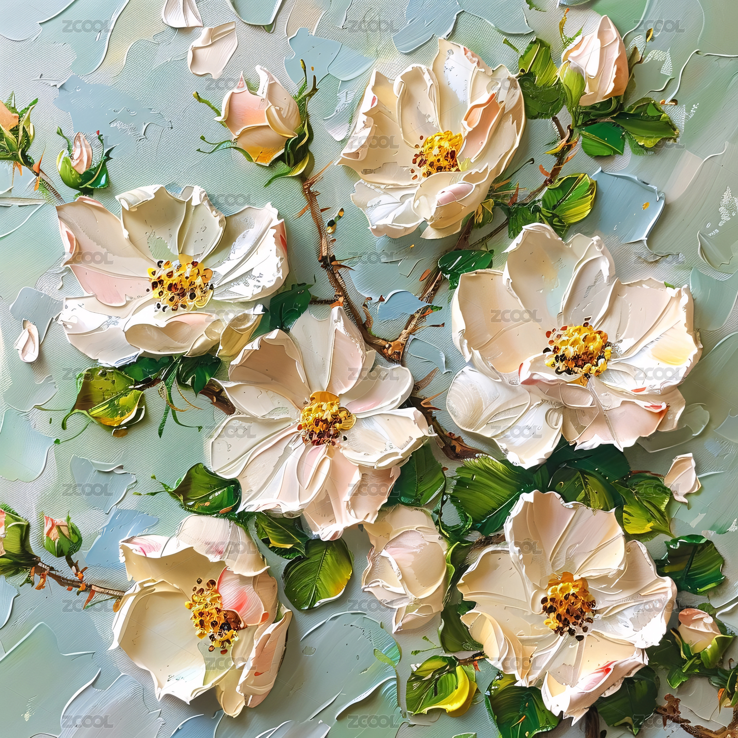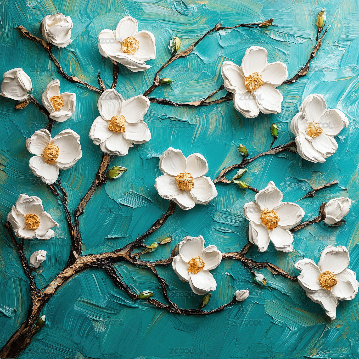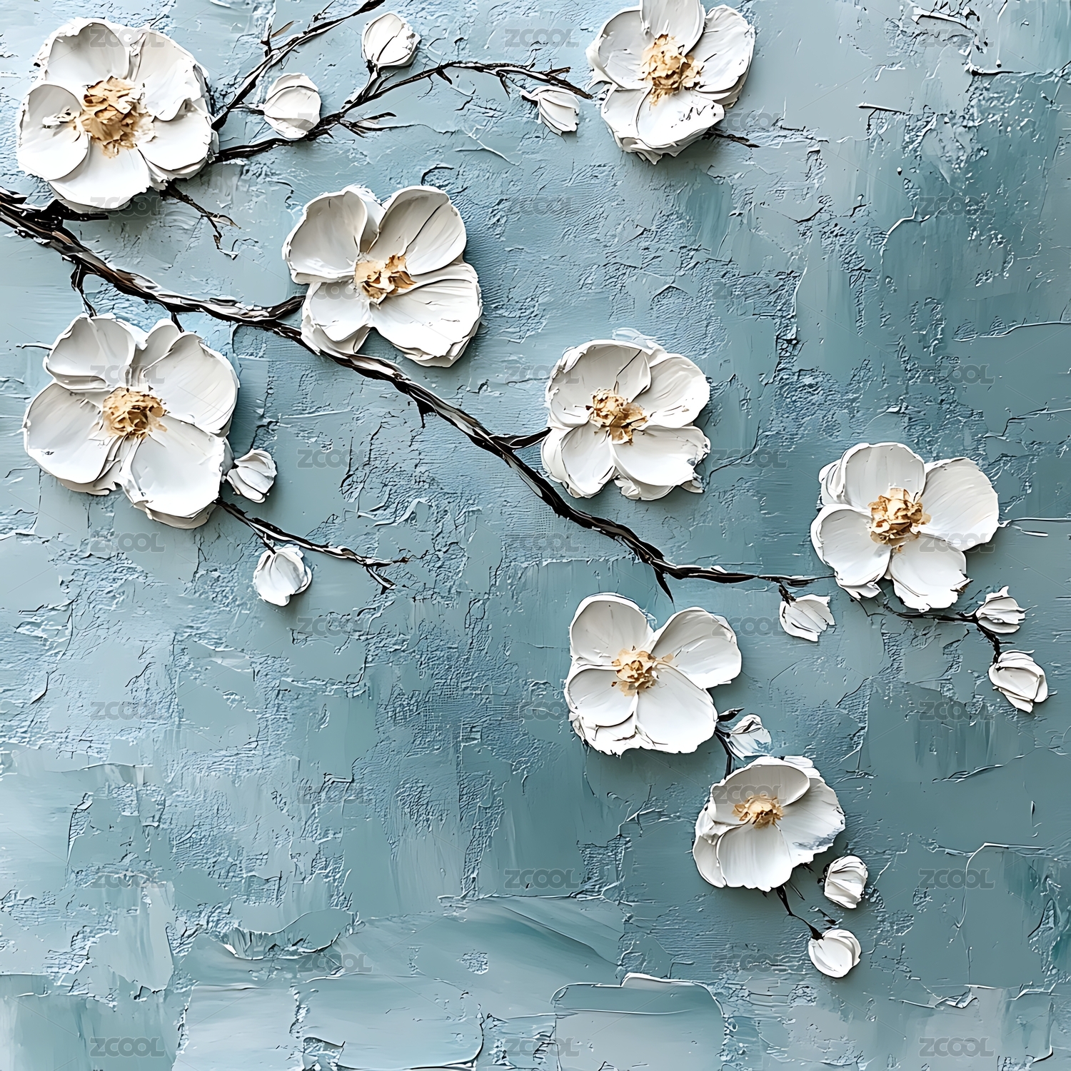 现代,绘画,油画,艺术,纹理,抽象,装饰,壁画,白色,花朵