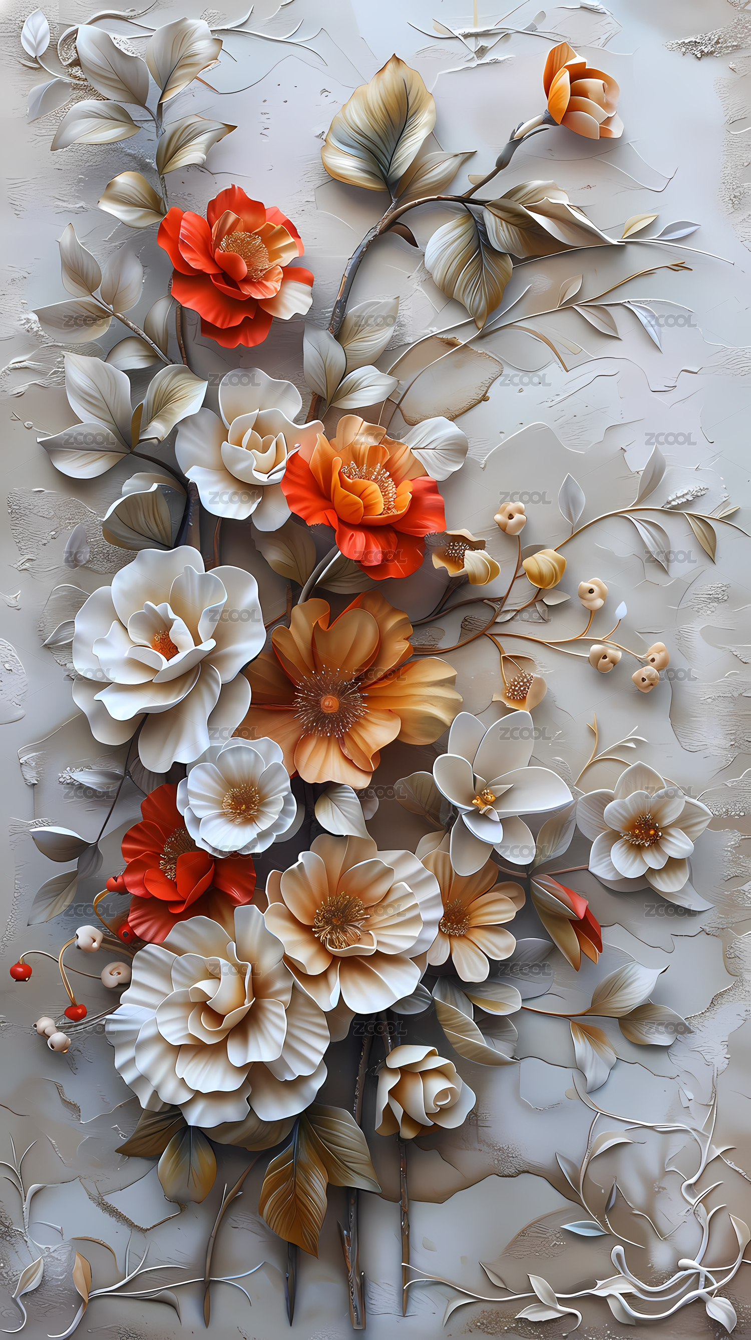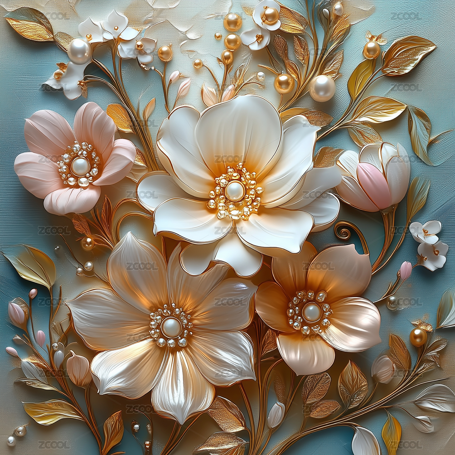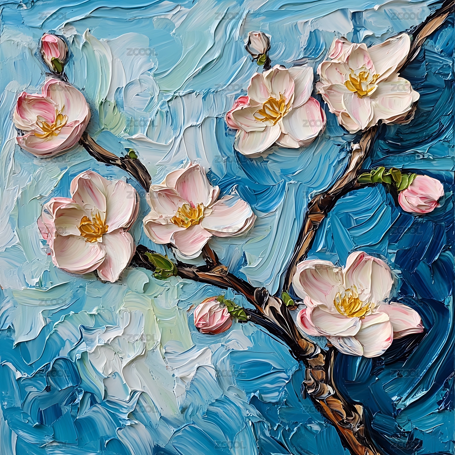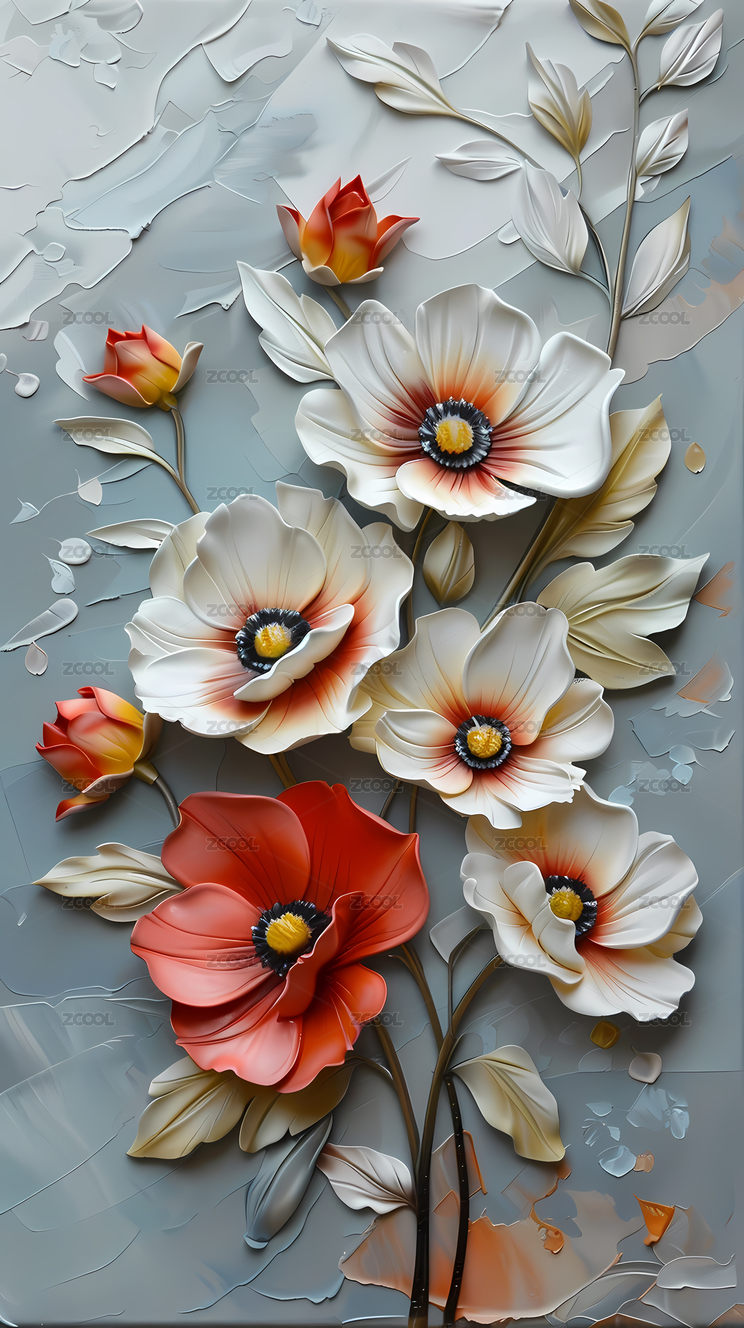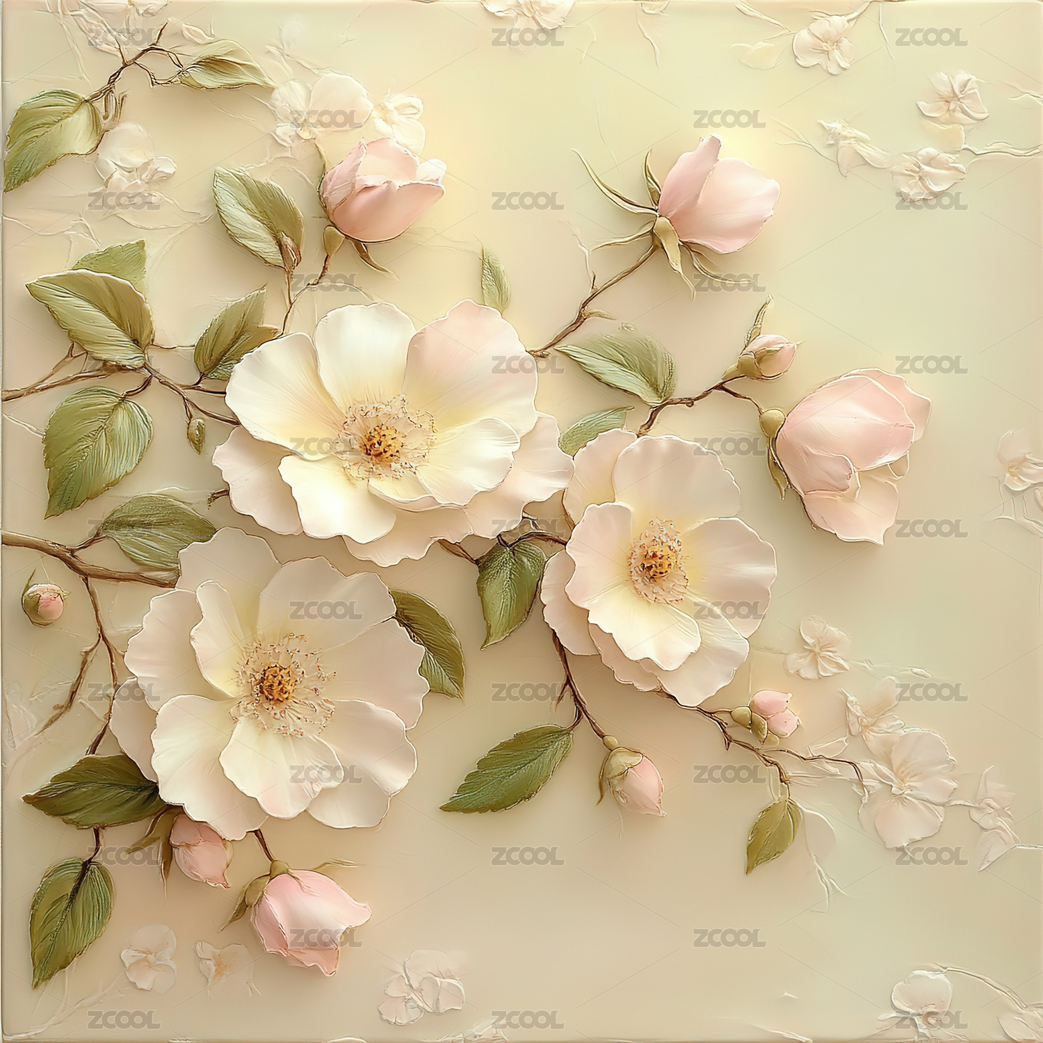 现代,绘画,油画,艺术,纹理,抽象,装饰,壁画,白色,花朵