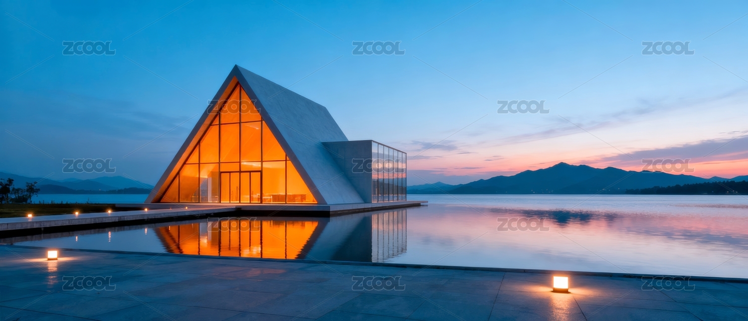 建筑,现代,设计,自然,玻璃,窗户,水面,倒影,天空,光线