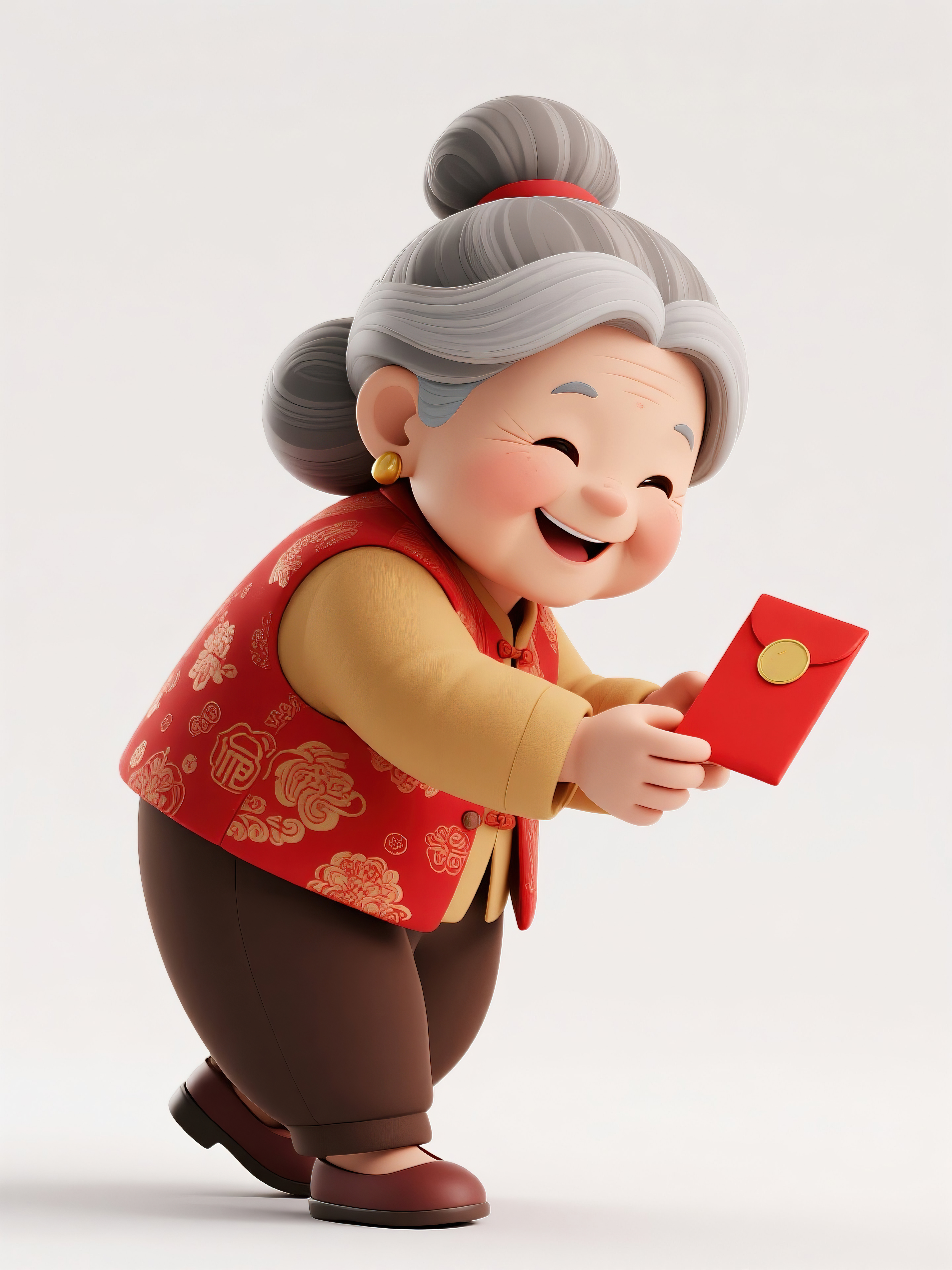 三维,可爱,卡通,人物,红包,新年,春节,节日,奶奶