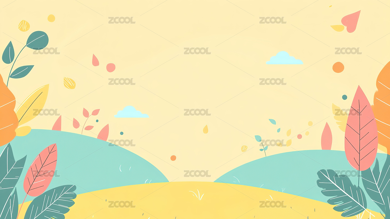 小清新的黄色植物叶子图形插画边框