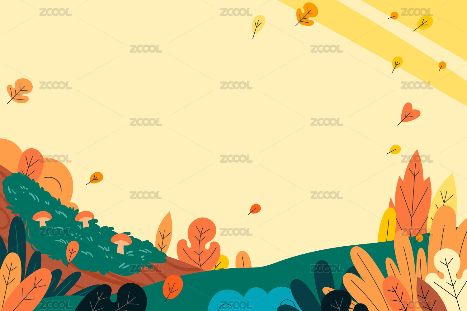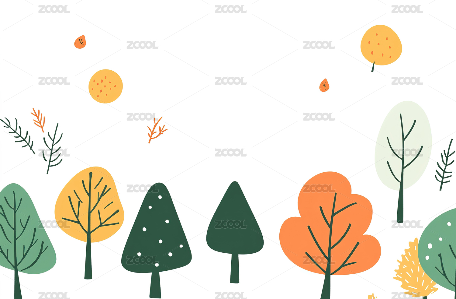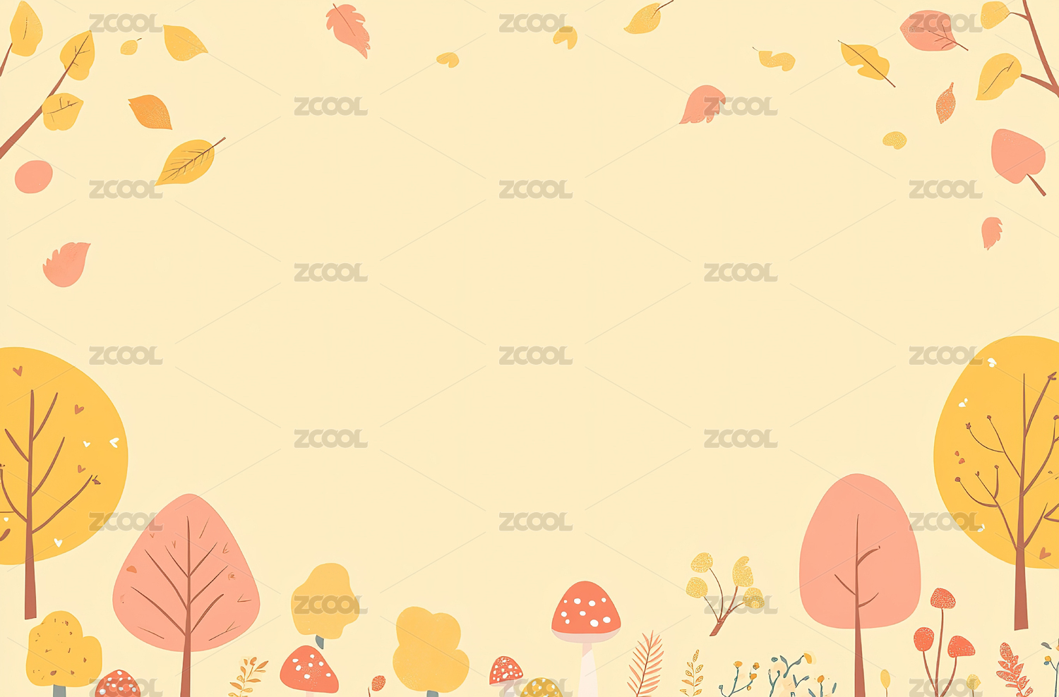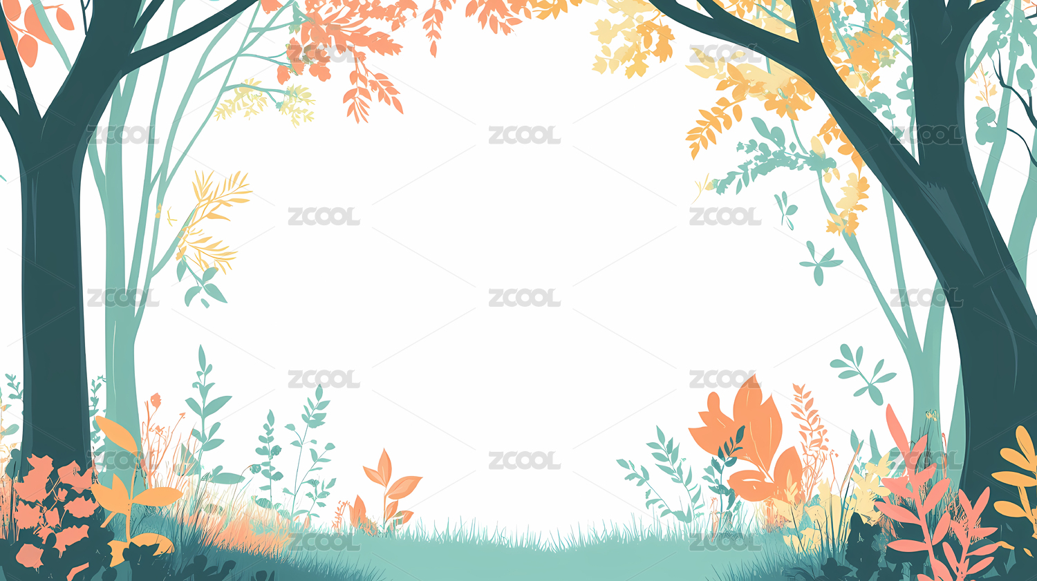 森林自然户外手绘边框扁平卡通背景