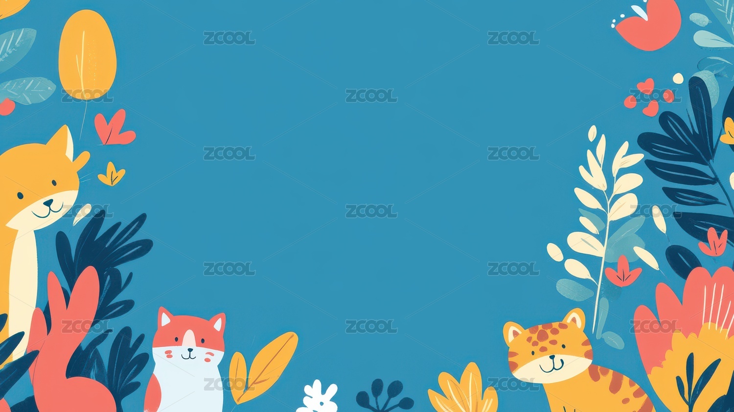卡通动物与植物的欢乐世界