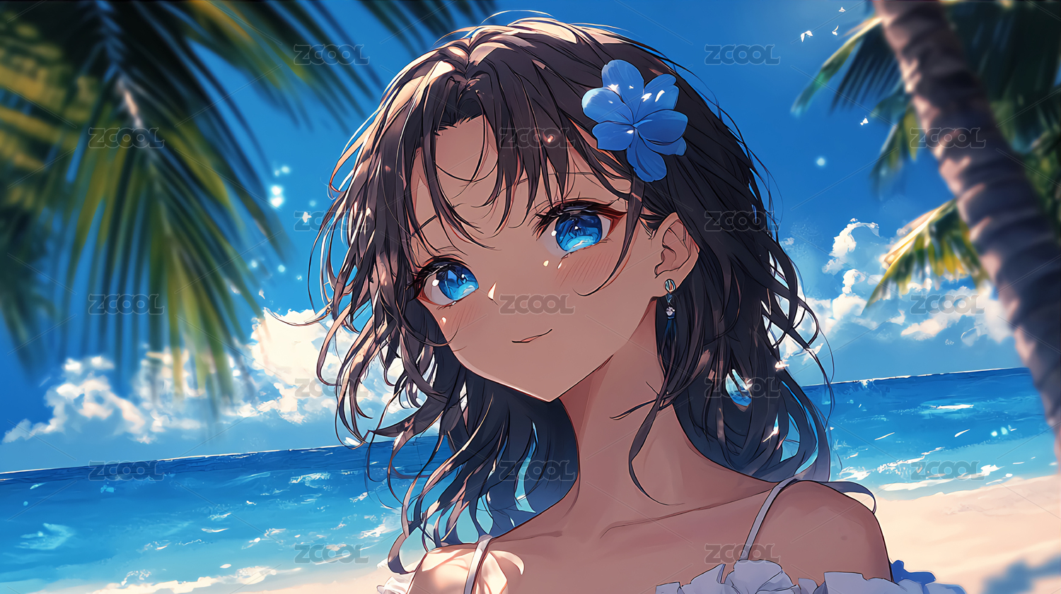 夏日海边少女的清澈眼神