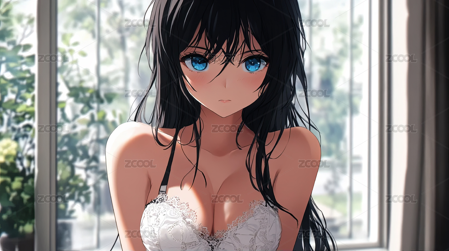 窗边黑发少女的温柔目光