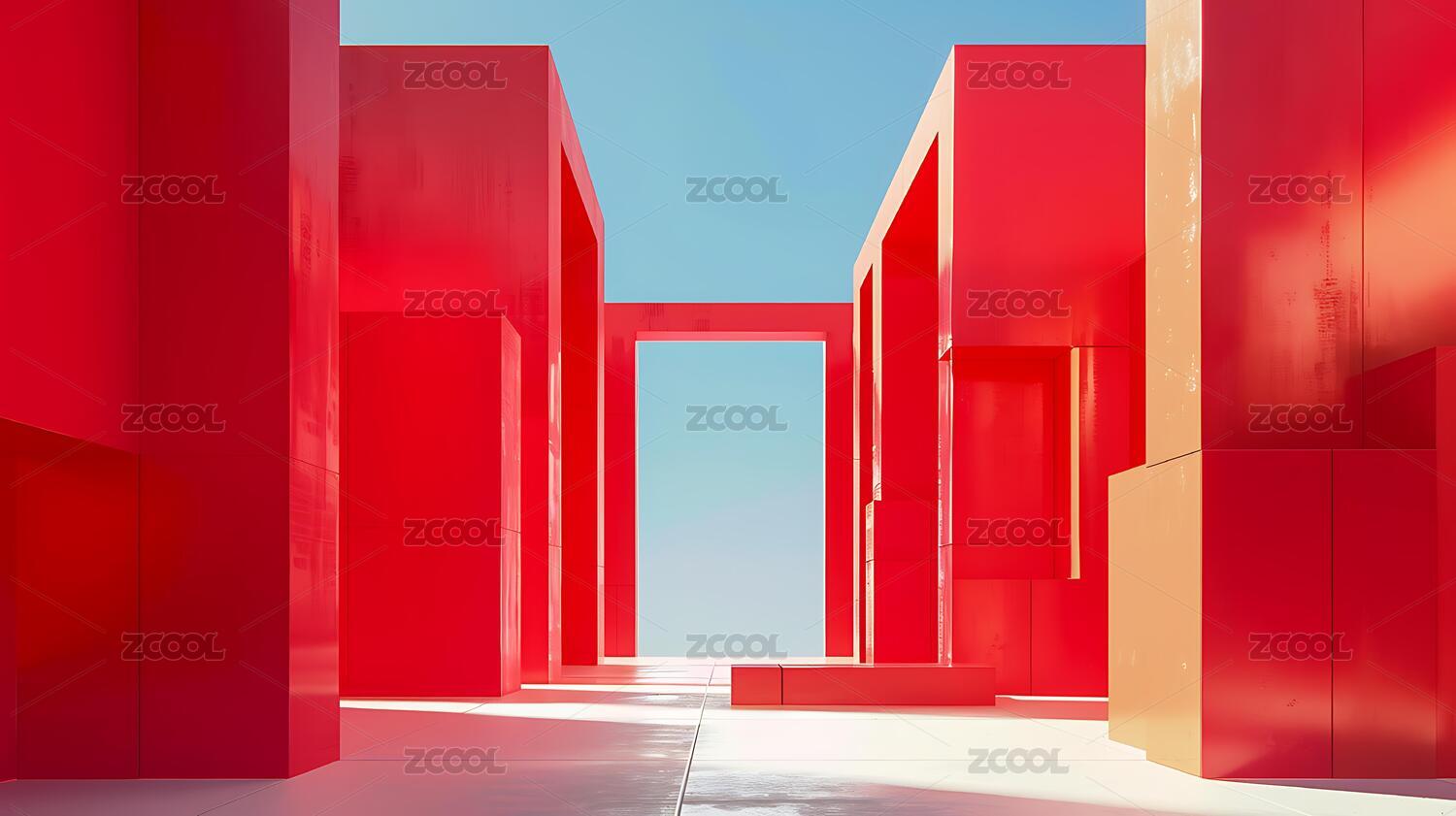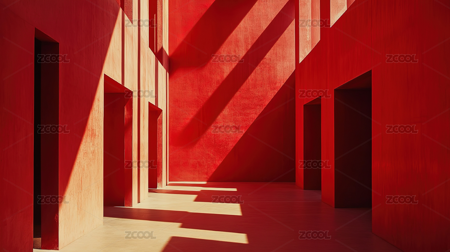 红色抽象建筑空间光影交错