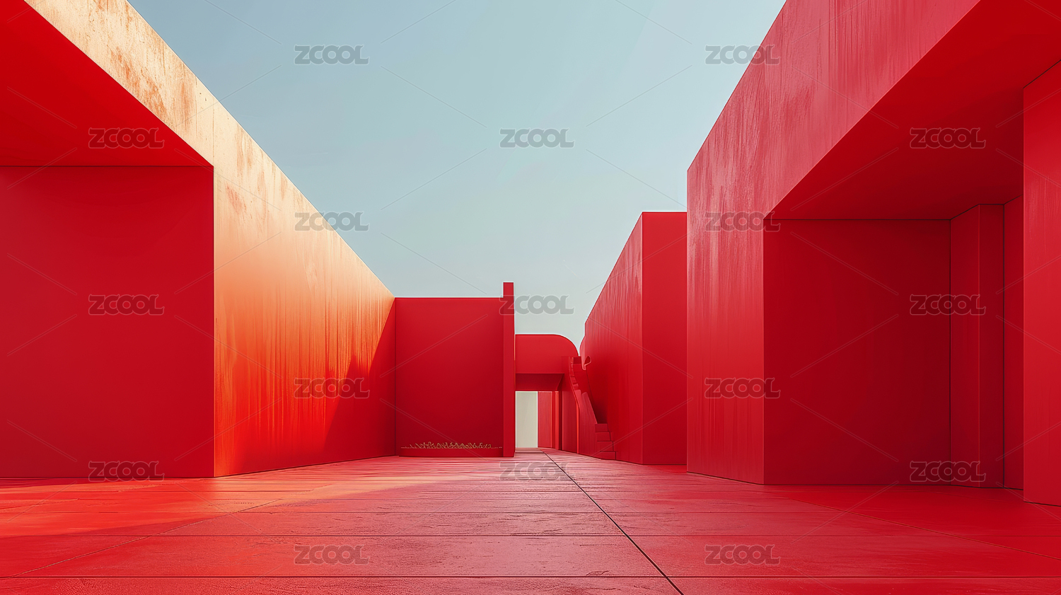 红色抽象建筑背景极简设计