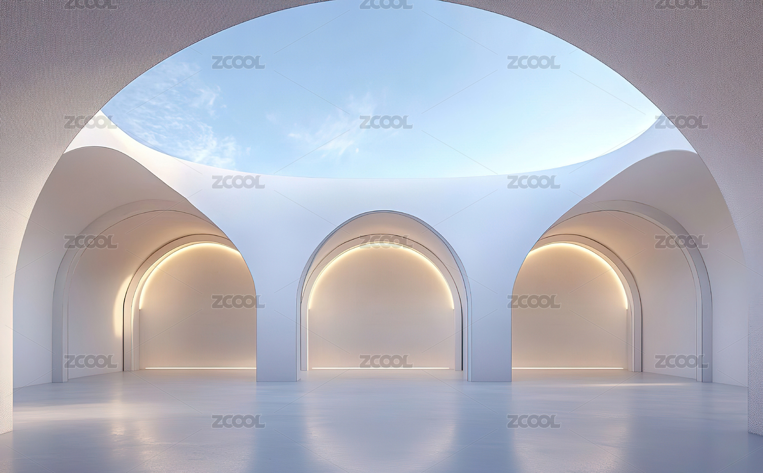 现代拱形走廊光影效果